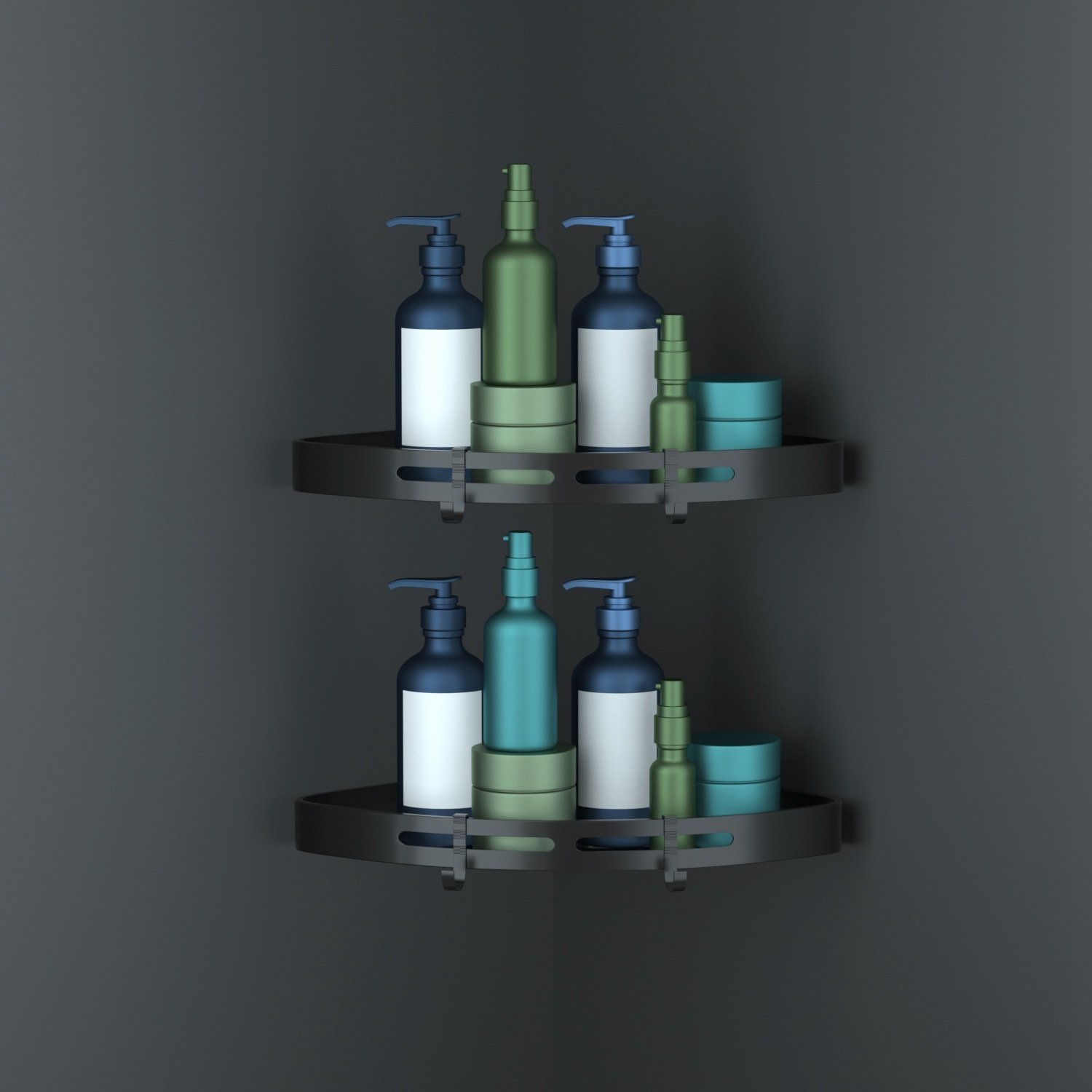 **Space Saving Shower Shelf*:These bathroom shelves are designed for organizing your space; ONLY for 90°corner. Small kinds of stuff remain in position while the larger bottles are able to stand upright; like shower gel; cosmetics; hair conditioner and more. Each shower corner shelf is equipped with 2 hooks for hanging cloths; towels etc..