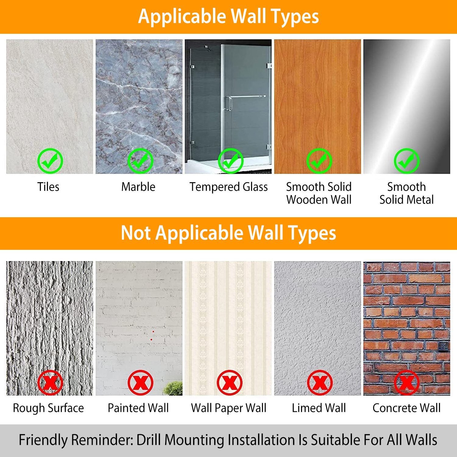 Kindly please be advised on 'No Drilling Method':a) ONLY stick shower caddy on smooth hard and flat surfaces. b) Please DON’T stick the shelf on painted walls or wallpapers as it will take off your paint or wallpapers.