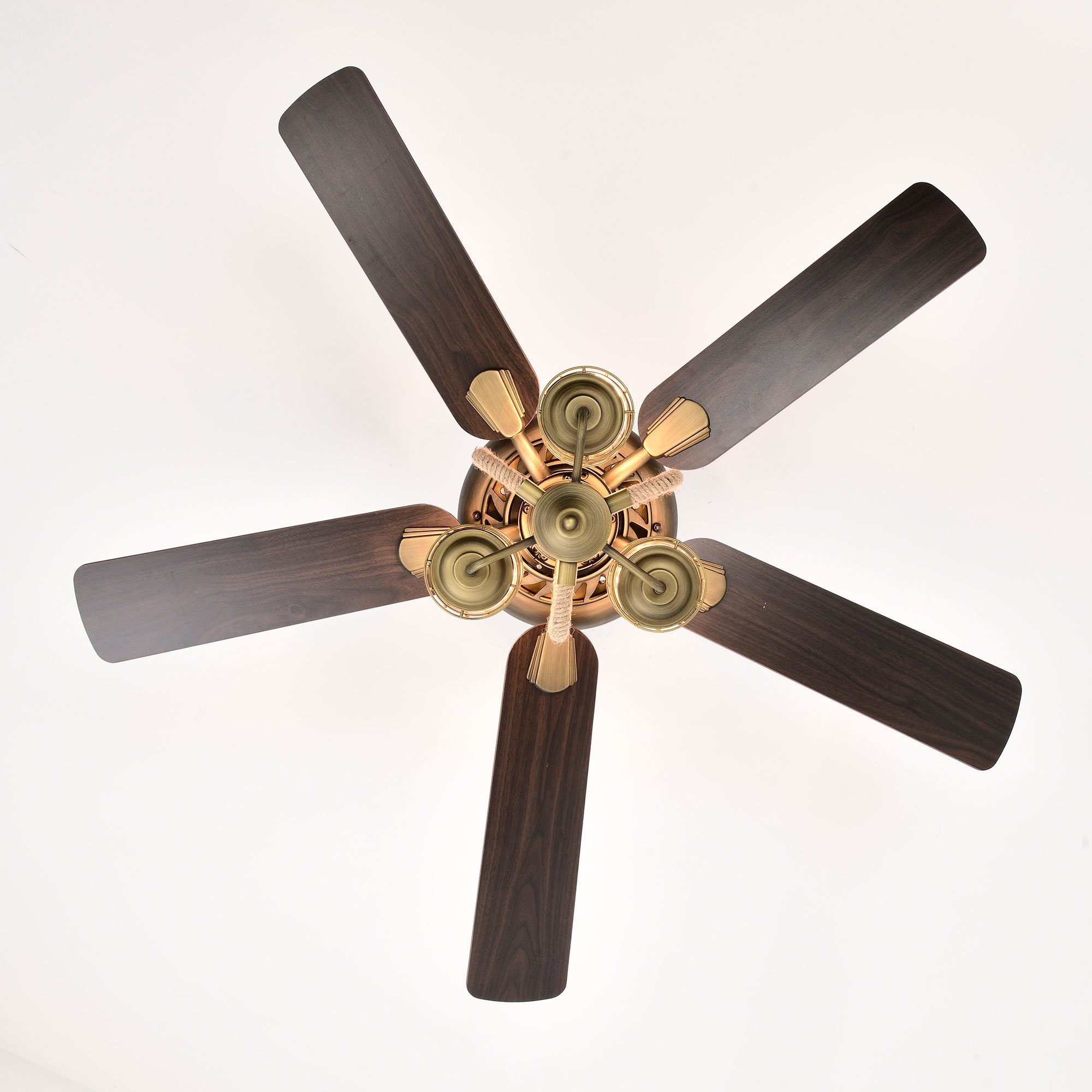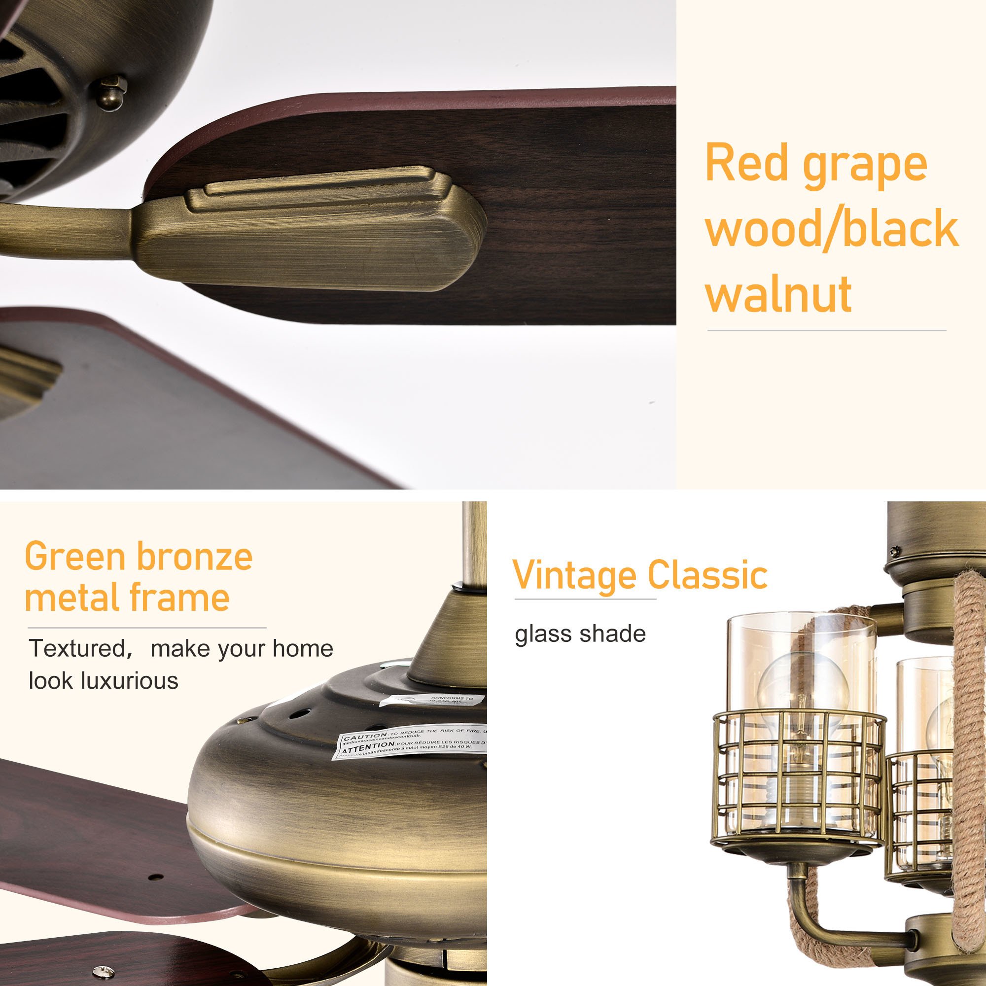 This is a classic large-blade ceiling fan with 5 reversible blades; both sides are red grape wood and white maple; suitable for various decoration styles; classic and versatile; with retro lampshade style; looks like Very advanced.