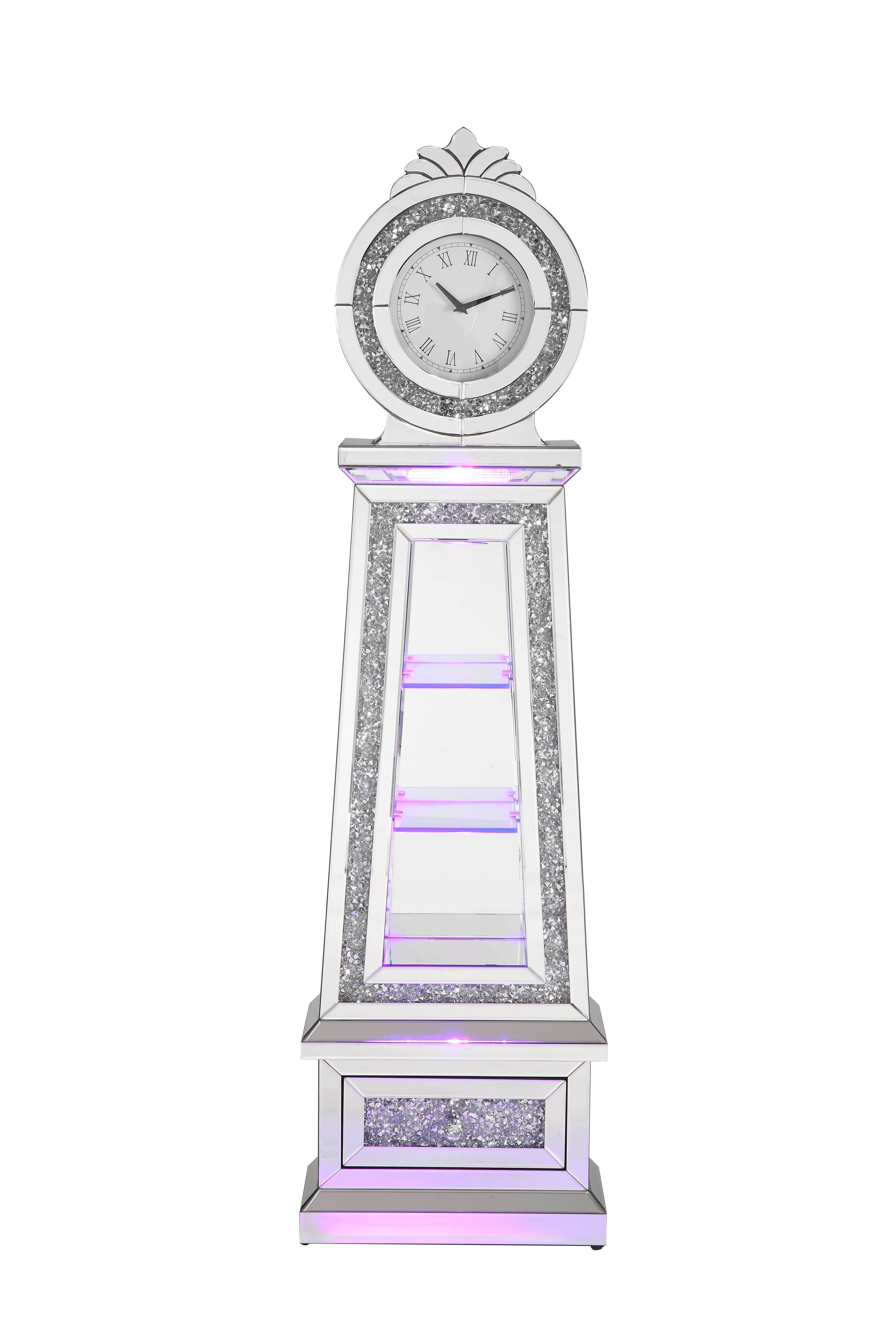 ACME Noralie GRANDFATHER CLOCK W/LED Mirrored & Faux Diamonds AC00349