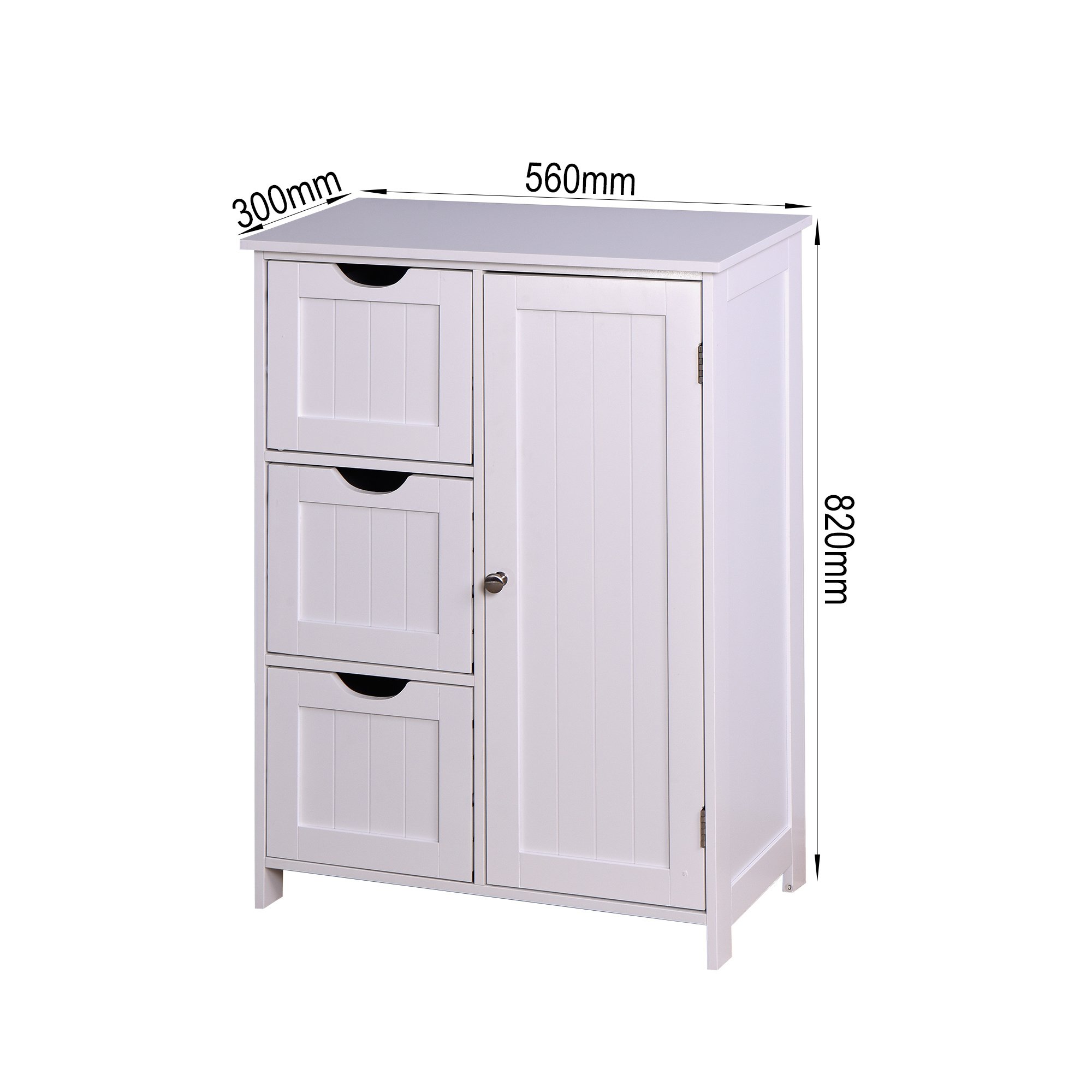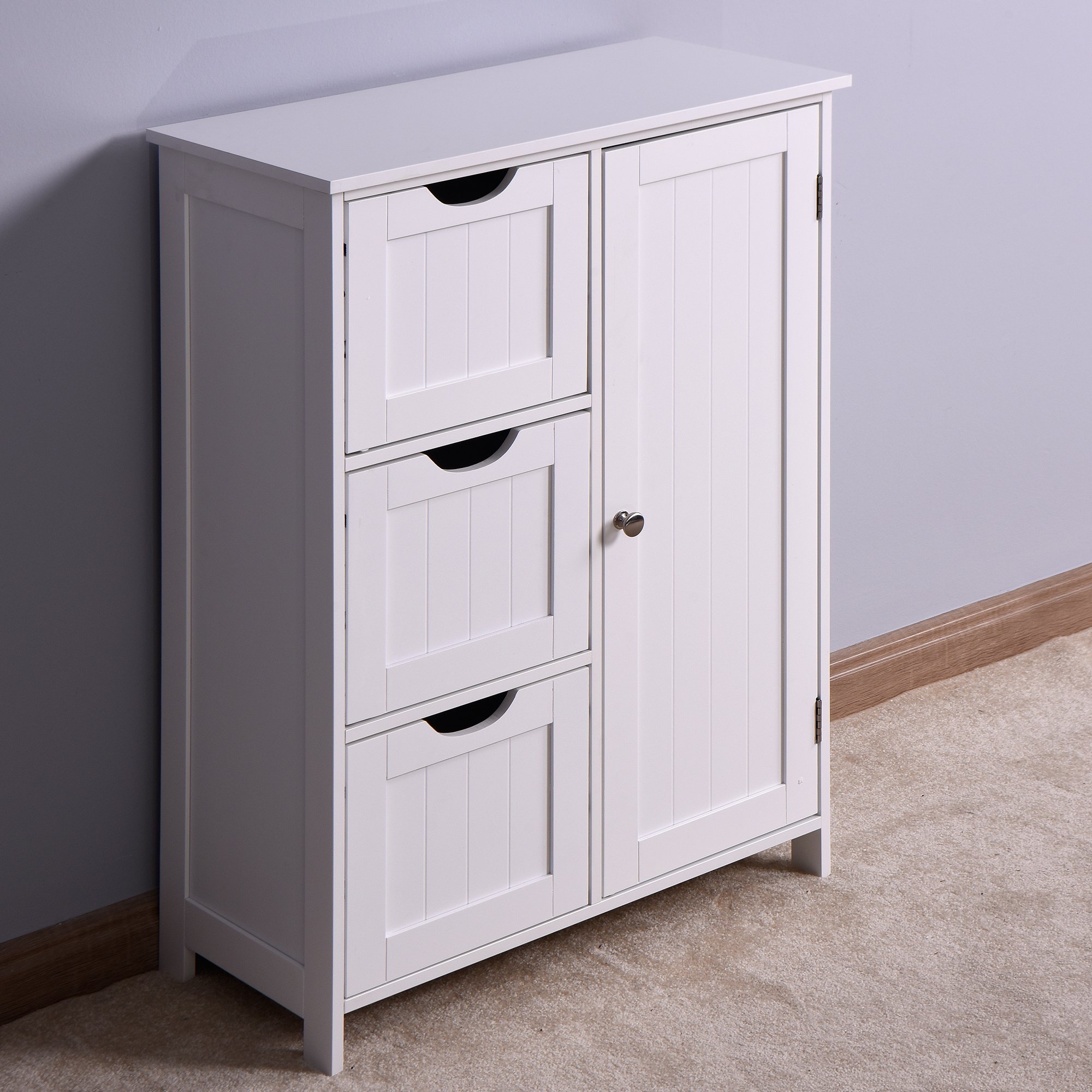 Home > Bathroom Storage Cabinet; White Floor Cabinet with 3 Large Drawers and 1 Adjustable Shelf