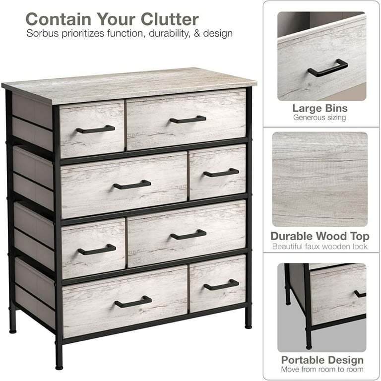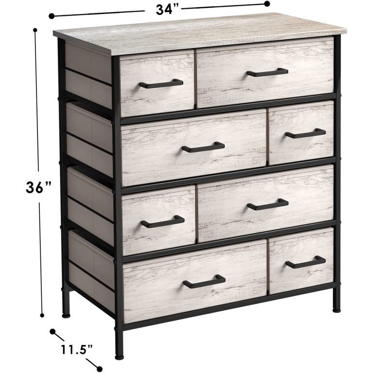 8 Drawer Dresser — Sturdy and durable steel frame provides stable support for your items. This dresser is perfect for storing lighter items like socks and underwear as well as heavier items like jeans and jacketsLightweight and Portable – Thanks to its lightweight design, the dresser is portable and can be easily moved from room to room.