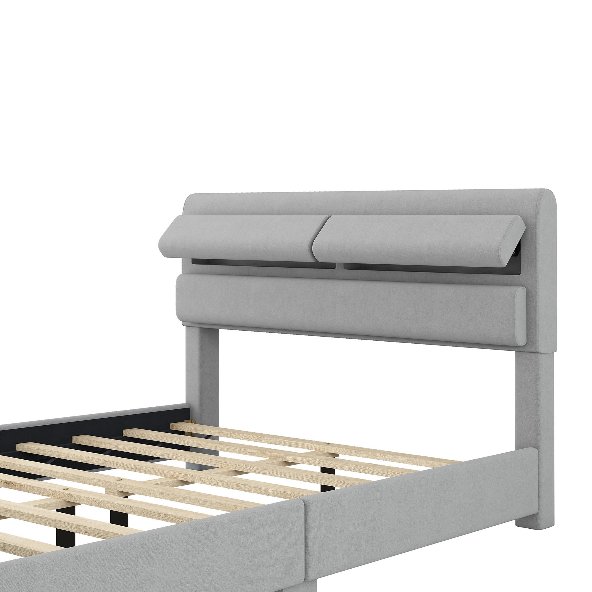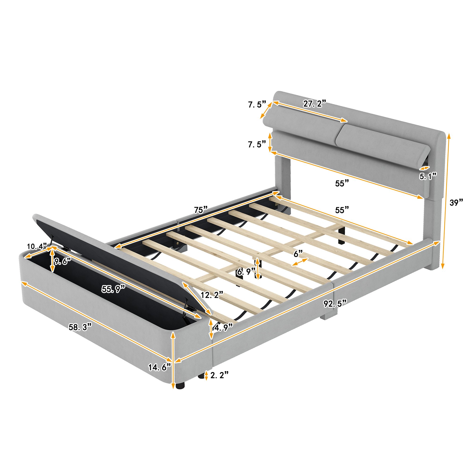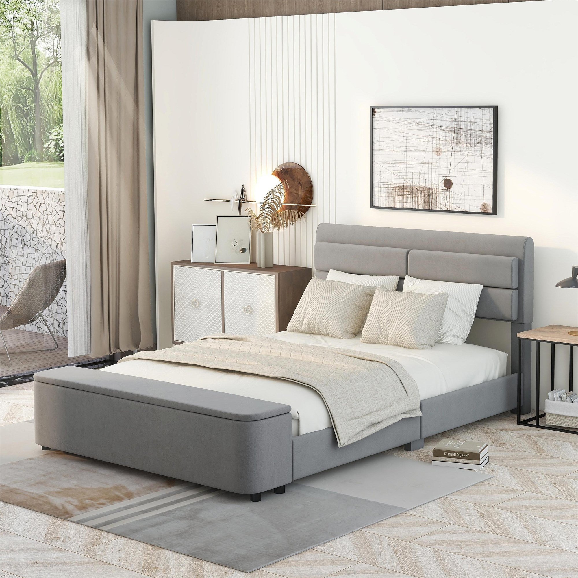 Full Size Upholstery Platform Bed with Storage Headboard and Footboard,Support Legs