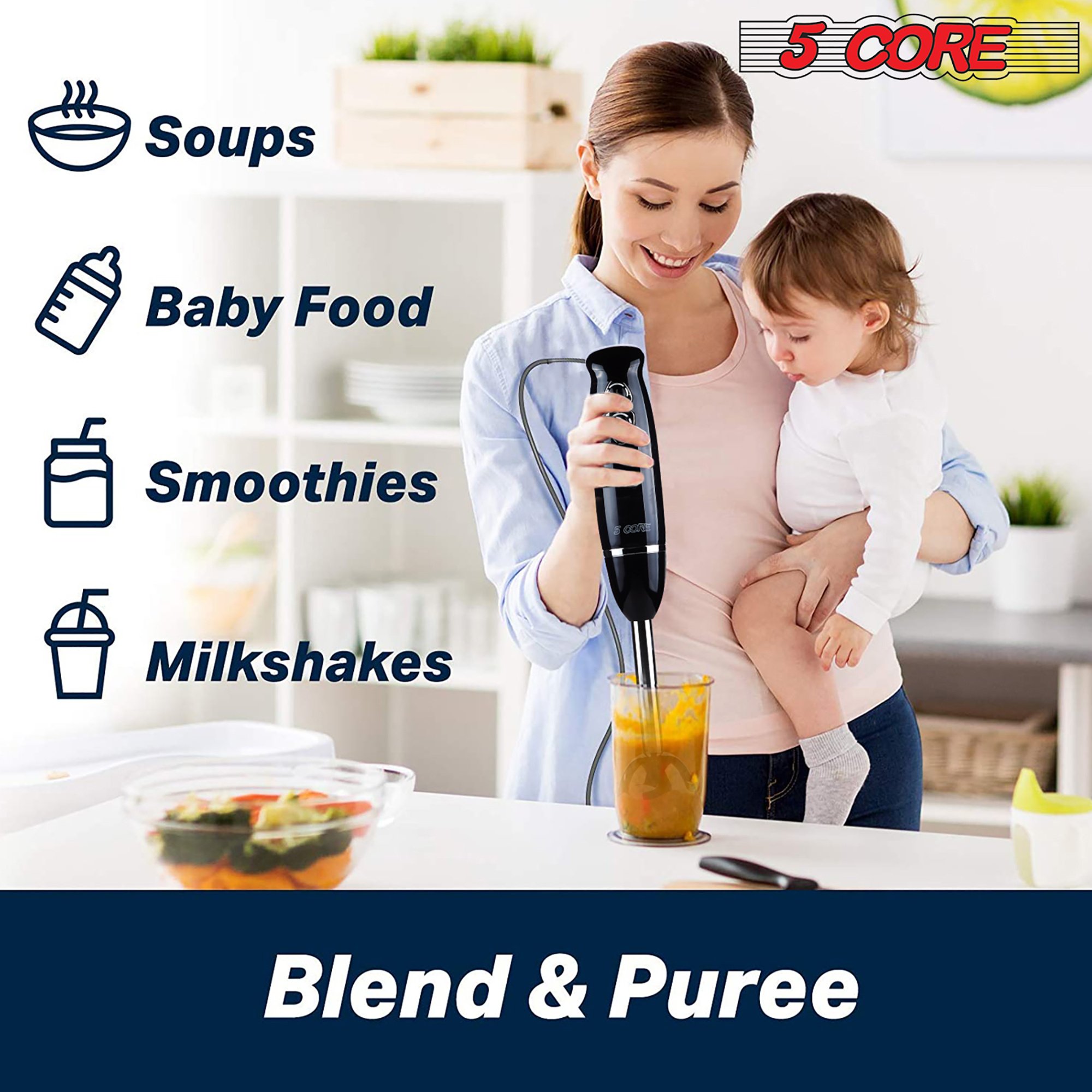 5 Core Handheld Blender, Electric Hand Blender 500W, Immersion Hand Held Blender Stick with Food Grade Stainless Steel Blades for Perfect for Smoothies, Puree Baby Food & Soup