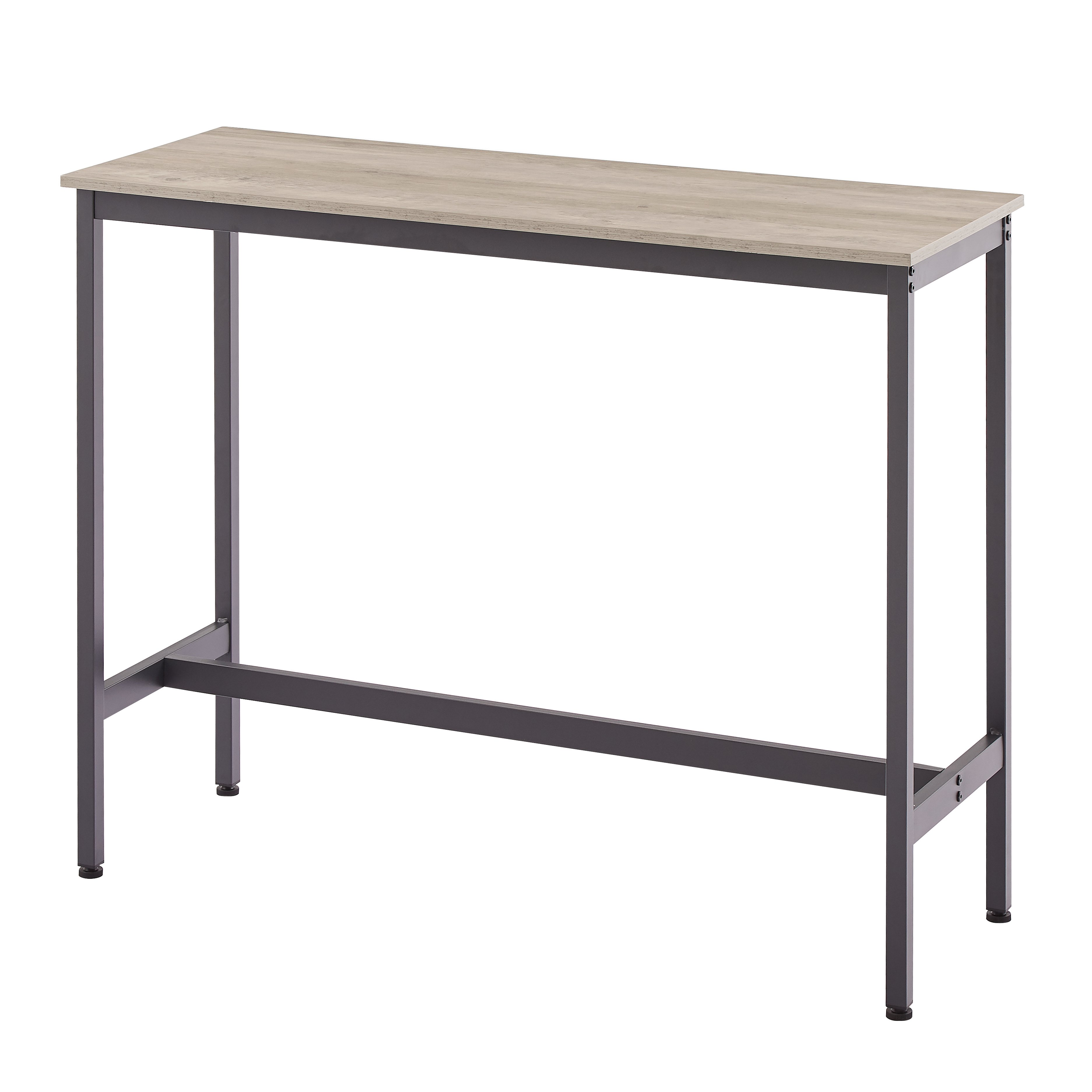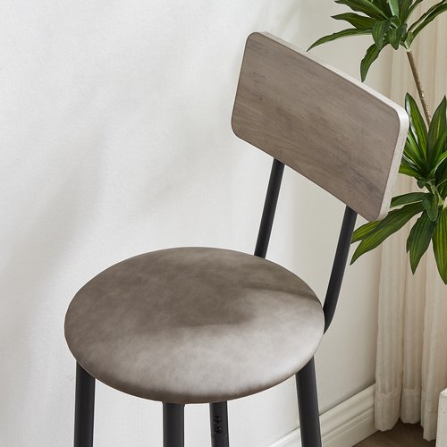 Bar Table Set with 2 Bar stools PU Soft seat with backrest (Grey; 43.31''w x 15.75''d x 23.62''h)Pieces Included1Bar table+2Bar stoolsProduct Description•The bar stool is equipped with a 12.6-inch wide PU upholstery; the seat cushion is about 24.41 inches from the floor; a ring-shaped footrest and a wooden backrest; with a soft touch; you can lean on the backrest comfortably.•Two stools can be placed under the table when not in use; it will not obstruct your passage; while keeping it clean and beautiful; it is very suitable for small spaces. Suitable for living room; dining room; kitchen; study; bar and other places.• The bar table and chairs are composed of sturdy iron frame and high-quality particle board (0.6 inches thick); carrying capacity: table: 200lbs. Stool: 220 lbs.• Rustic brown particleboard and high-quality black iron frame create a minimalist style; while the PU upholstered seat gives an industrial feel and comfort.•It can create a resting space for you anywhere at home. You can pull the chairs out from under the table at any time and have a drink with family and friends; which will make you feel the relaxed atmosphere and have a good time.Product information•Product Type: Bar table set of 3•Color:Grey•Material: Particleboard + Iron +PU•Table Dimensions: 43.31''w x 15.75''d x 23.62''h•Stool Dimensions: 12.60''w x 12.60''d x 36.22''h•Stool cushion height from the ground:24.41''•Backrest width:11.85''•Table Weight:21.78LBS•Stool:7.7LBS•Tabletop Thickness: 0.6'•Cushion Thickness: 2.36'•Table Weight Capacity:200 LBS •Stool Weight Capacity: 350 LBS•Assembly Required: About 25 minutes•Ships in 1 package Notice•Indoor use only.•Colorways and measurements may vary slightly.•Consult all warning information and use caution when assembling. •Liquids should be immediately blotted with a damp cloth. •Avoid the use of chemicals and household cleaners as they may damage the finish.