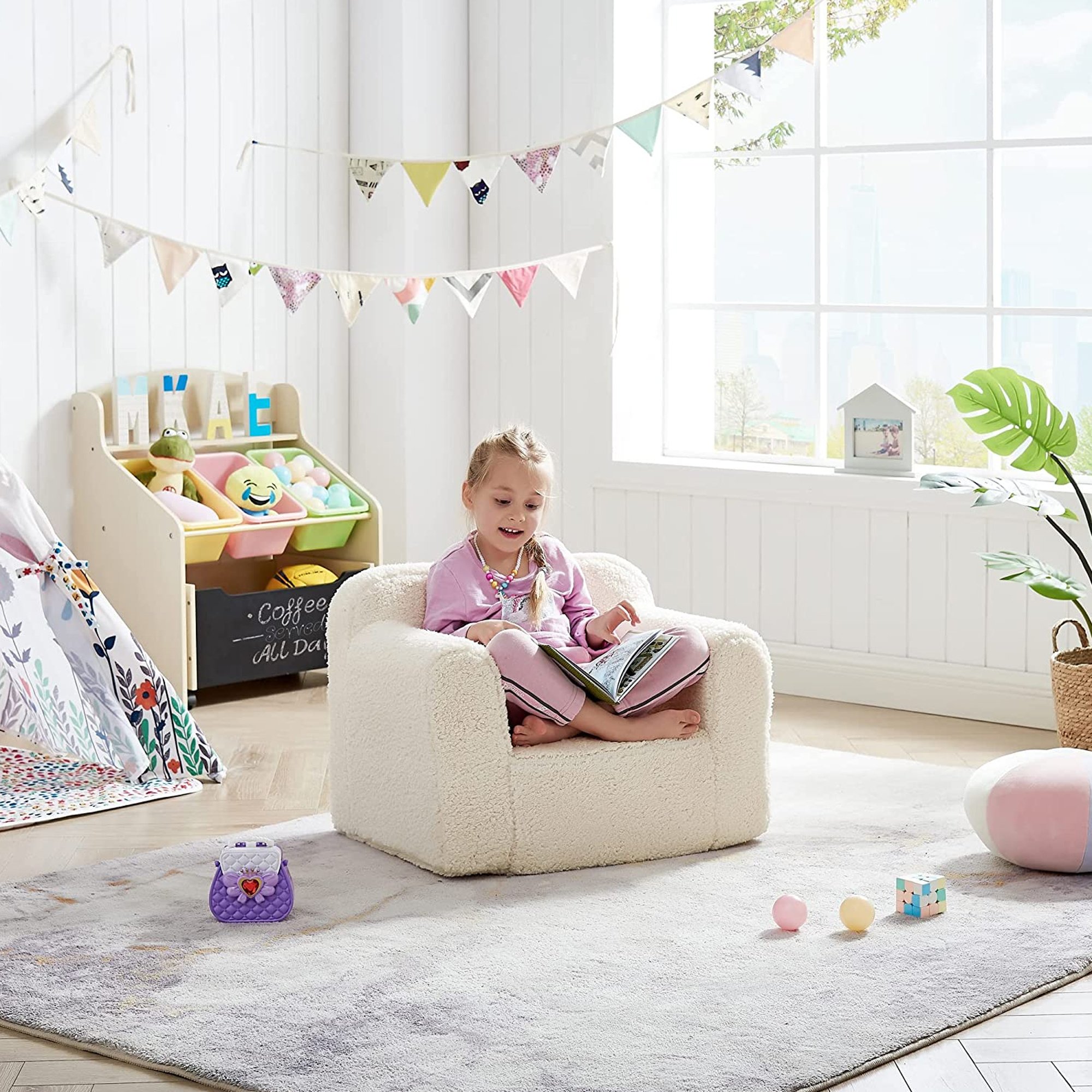 Kids Armchair Toddler Couch Baby Sofa Chair with Sherpa Fabric for Boys and Girls (Beige)