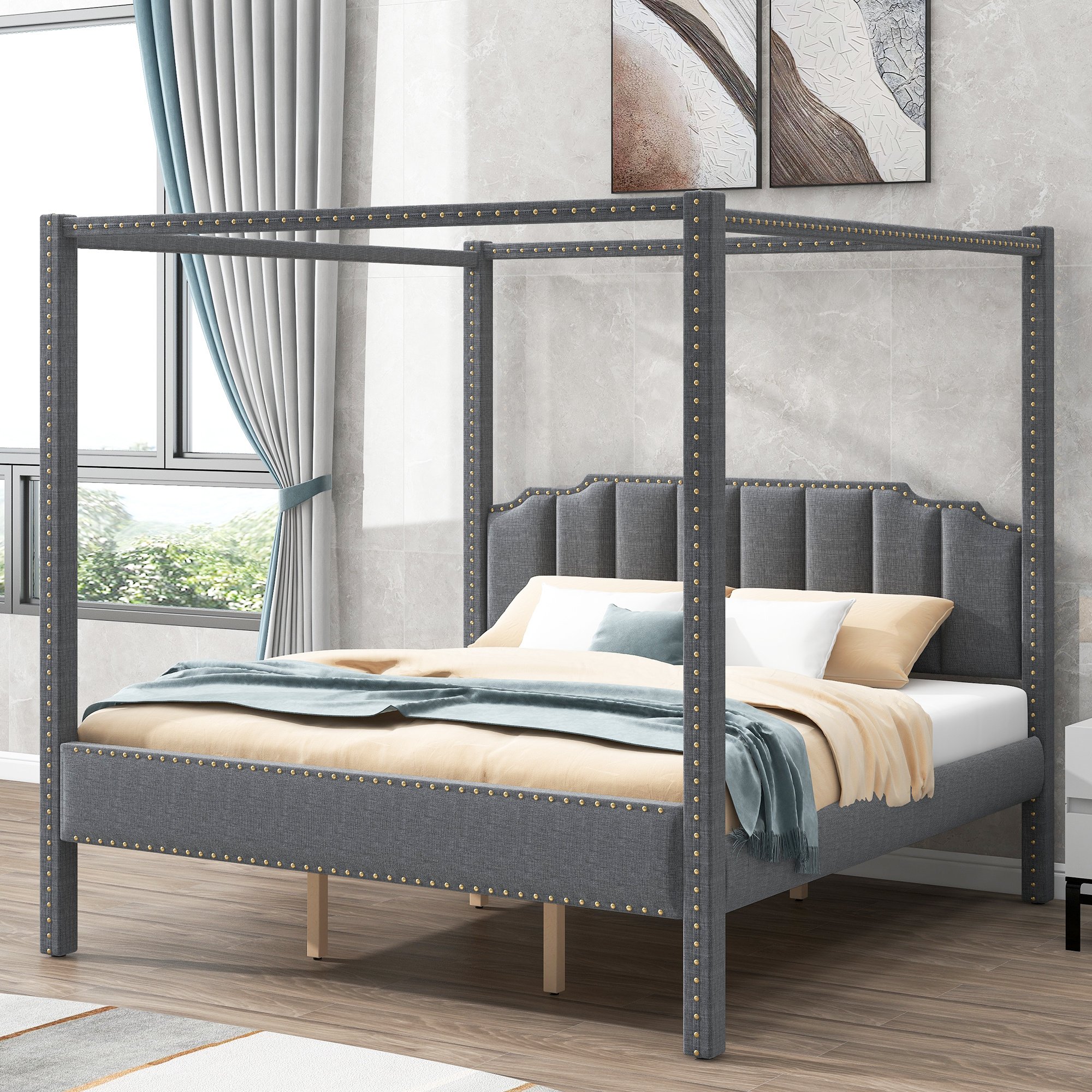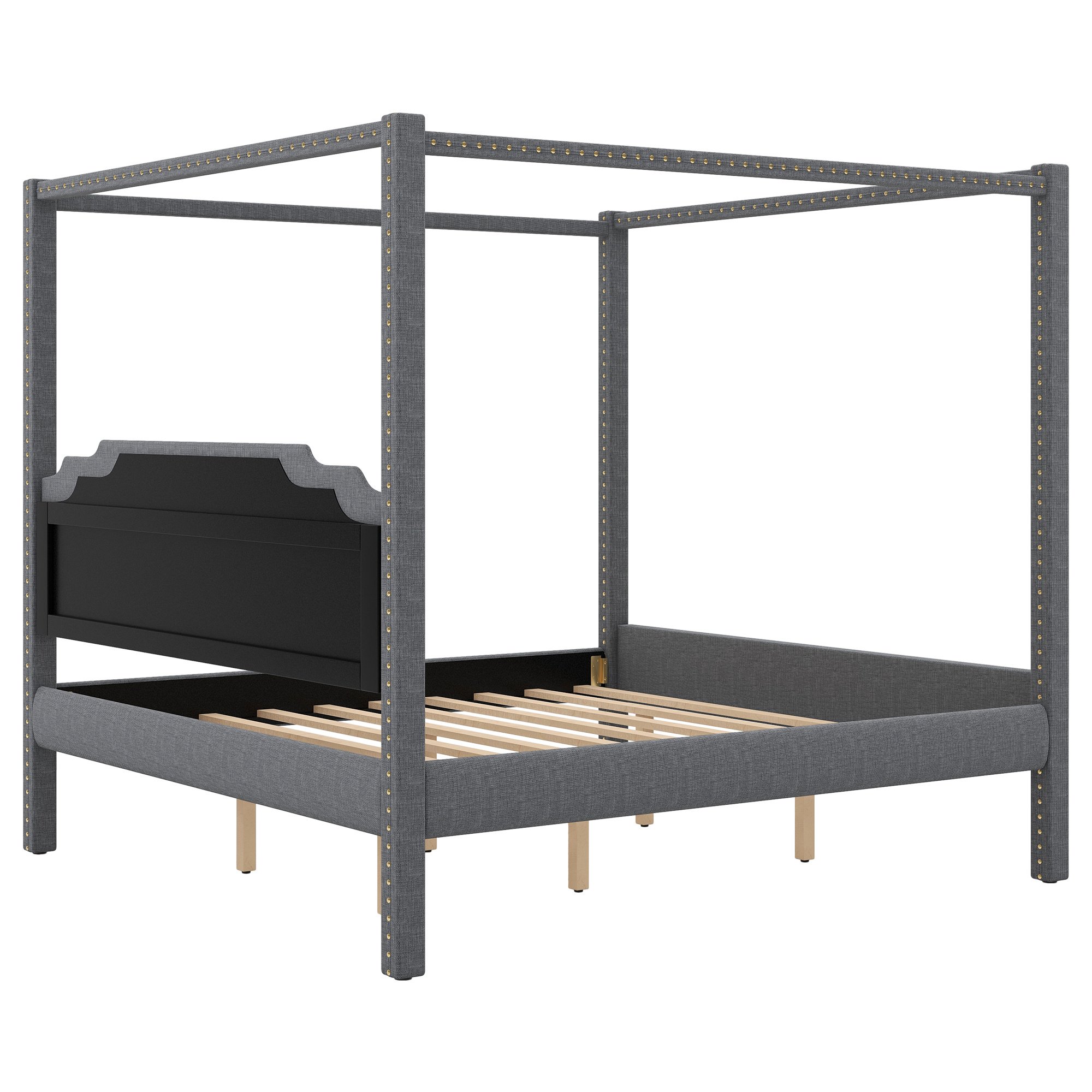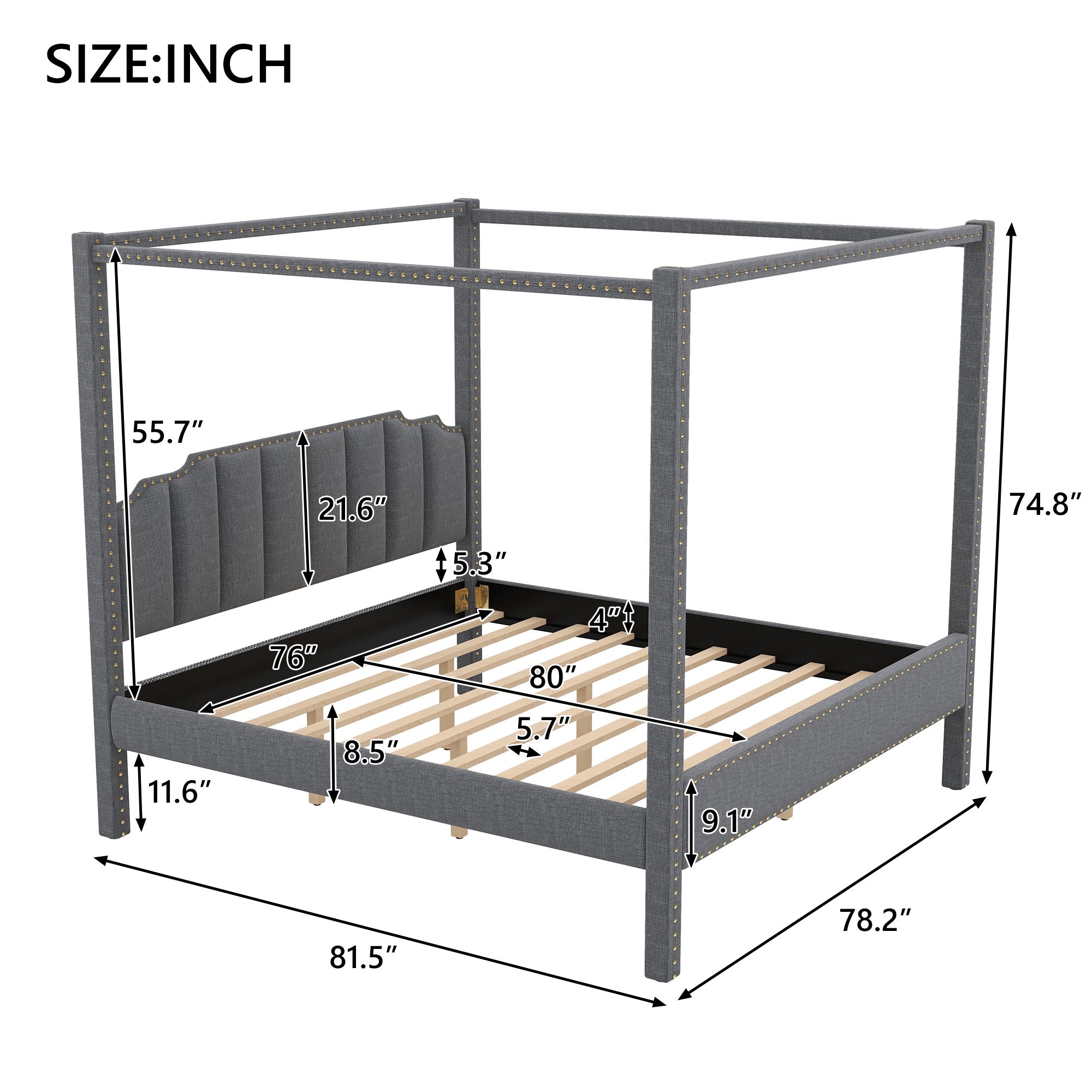 King Size Upholstery Canopy Platform Bed with Headboard,Support Legs