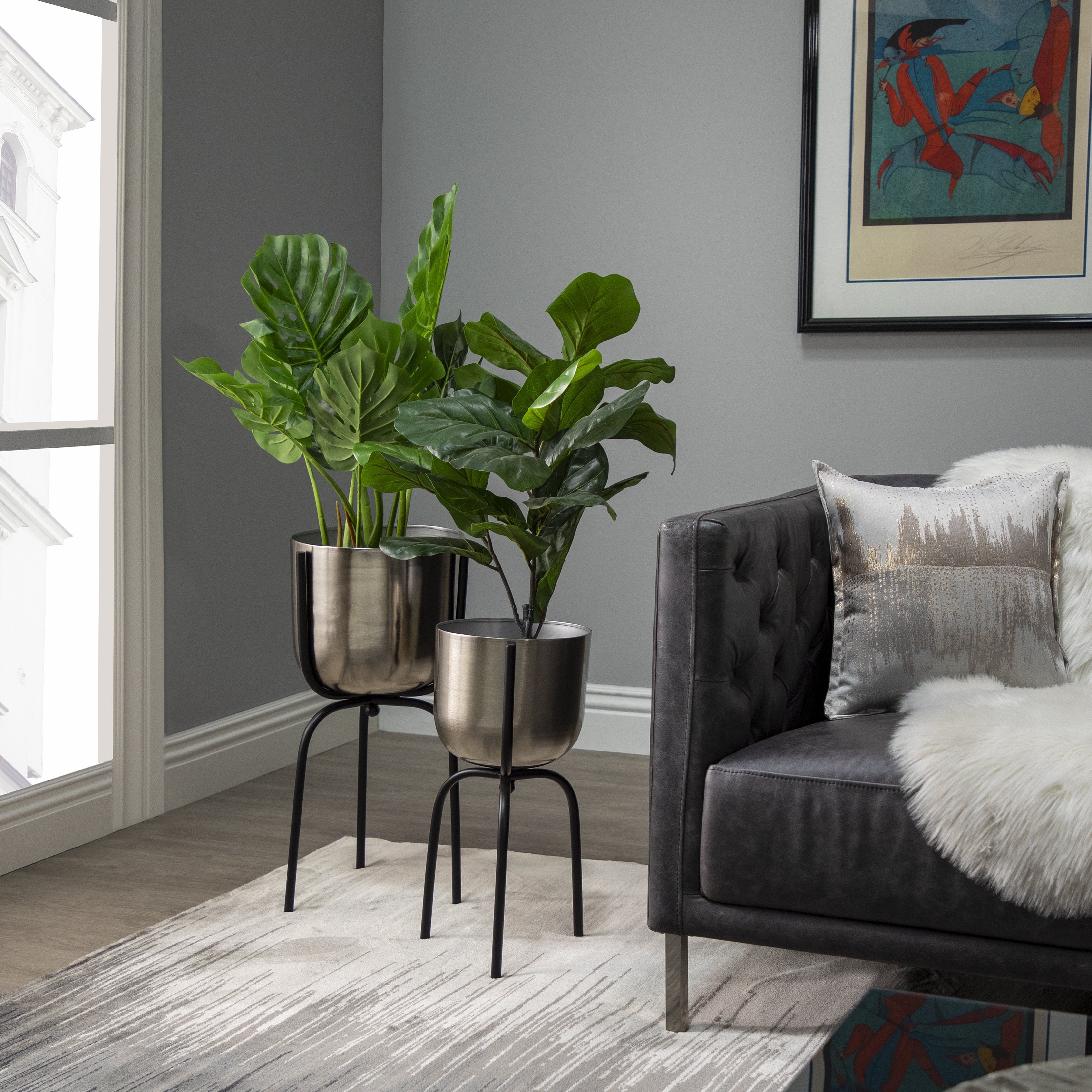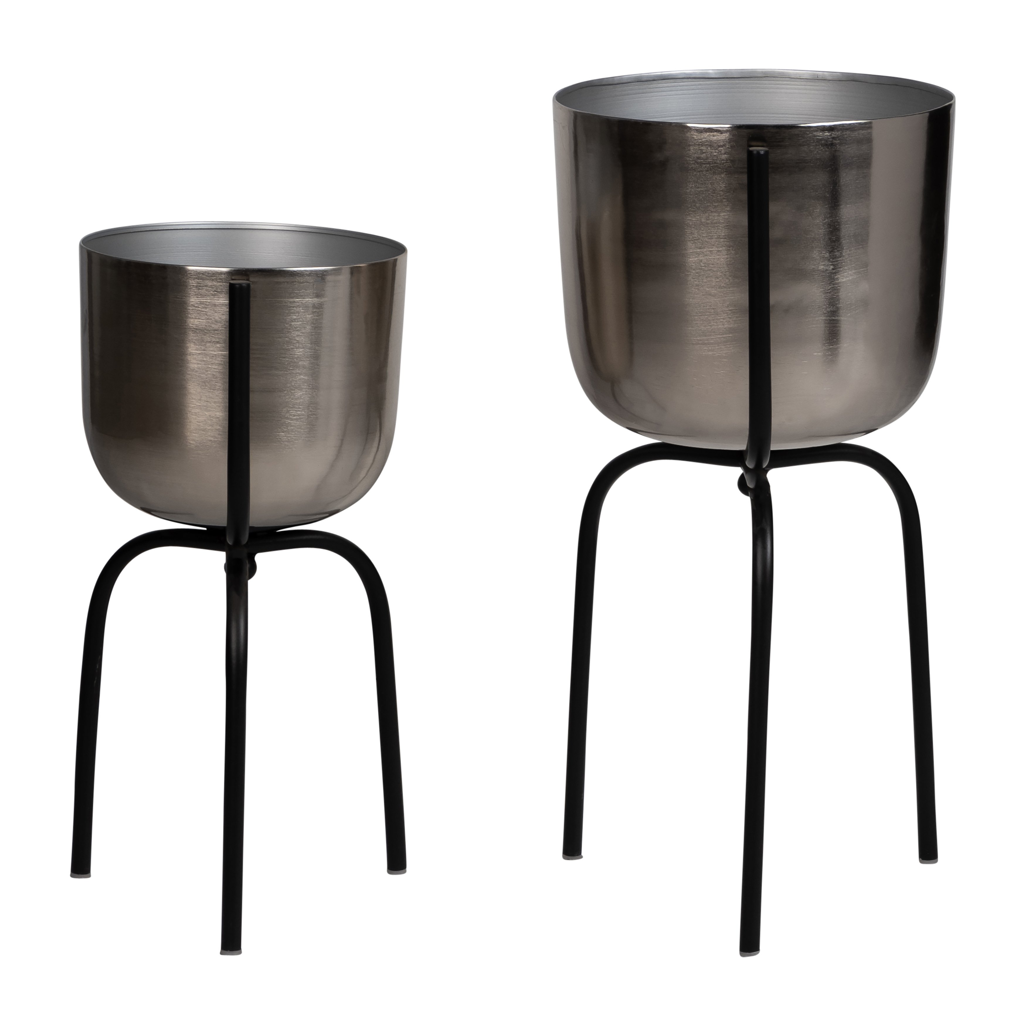 METAL 20" PLANTER ON TRIPOD, SILVER/BLACK