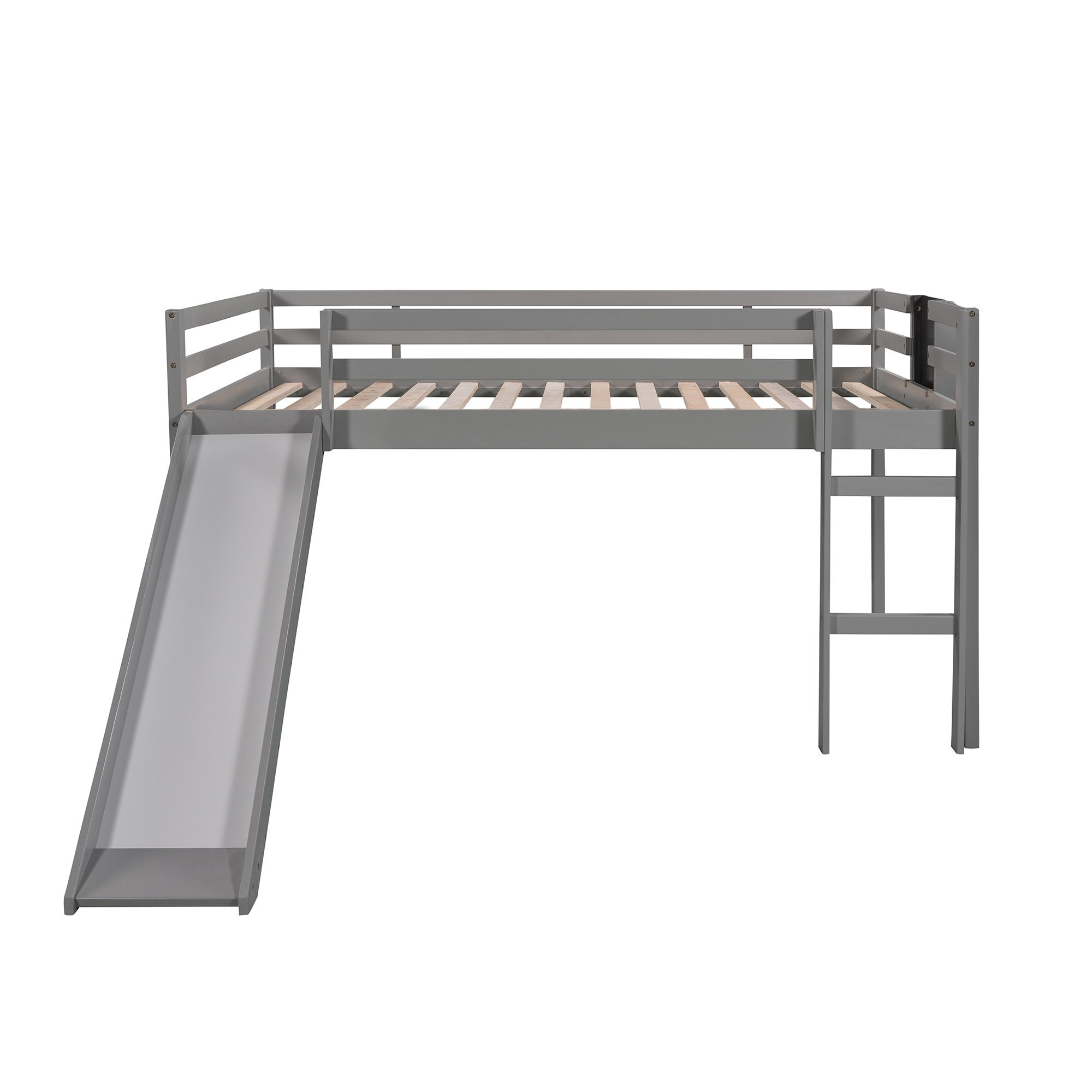 This interesting design loft bed offer the chance to push you gain more happiness in bedroom. The chalkboard set on the side of bed allow you use your imagination and creativity at any time; and stimulate the potential of your brain. For added extra fun; slide is included and can be put either left or right. The 13.7" tall guardrails to keep your safe on the top bed. High-quality; solid pine legs and a strong; durable frame ensures stability and durability for long-term use. Slat kit included so box springs are not required. This loft bed is designed with a clean silhouette and a hue of elegance. It suits all styles of home decoration; and completes the look of any bedroom.