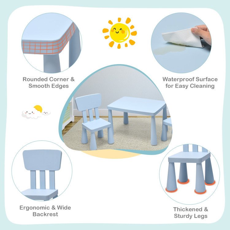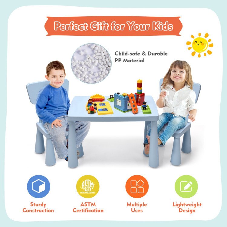 Ideal for arts; crafts; snack time; and homework with a multifunctional designPuts different belongings with ease thanks to its ample tabletopBright color makes it perfect for bedroom; living room; playroom; and nurseryHigh-quality PP material is non-toxic and tasteless and safe to useEnsures your little one's safety with round edge design and smooth surfaceOffers comfortable seating experience due to the ergonomic backrestSmooth surface is easy to clean; simple structure is easy to assembleASTM and CPSIA certification offers the best protectionSuitable for the kid who is 1-7 years old