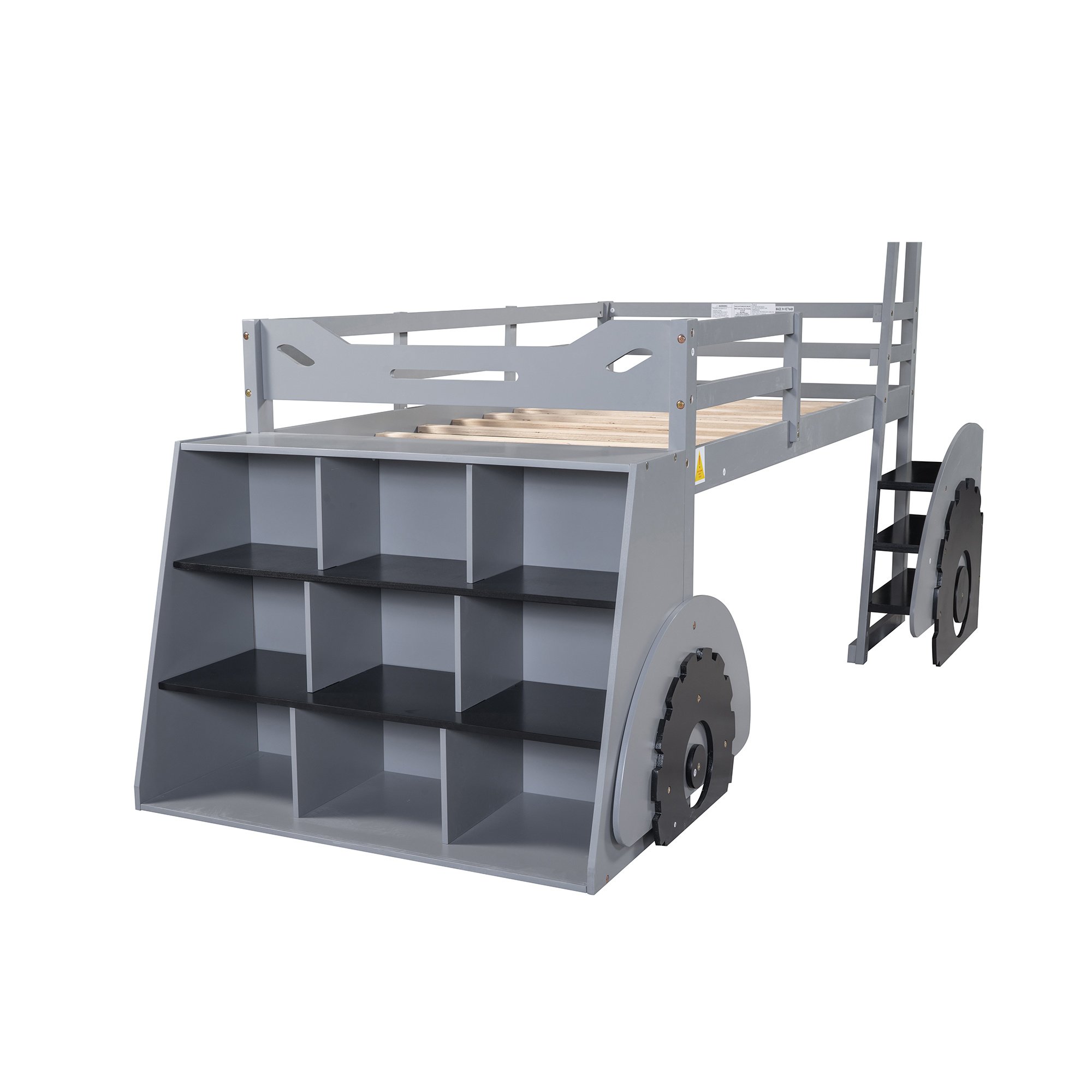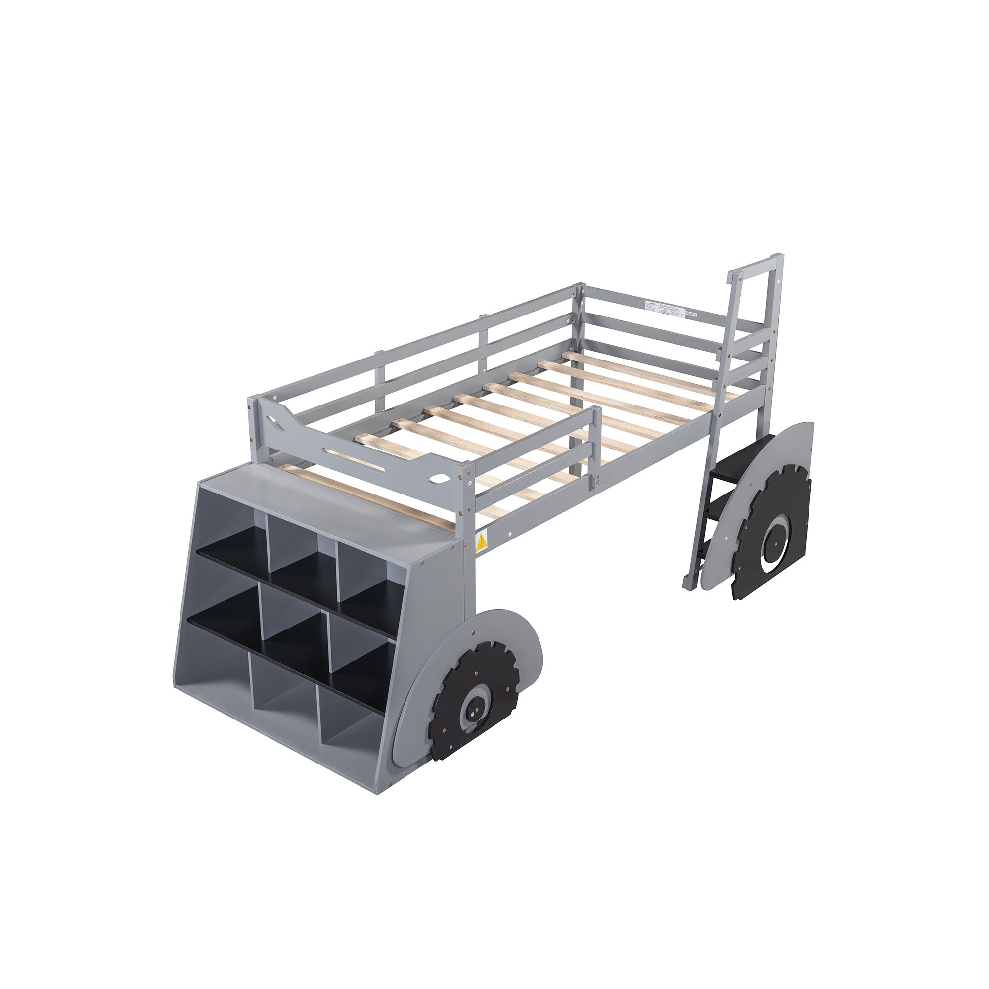 Home > Twin Size Forklift Car-Shaped Loft Bed with Storage Shelves