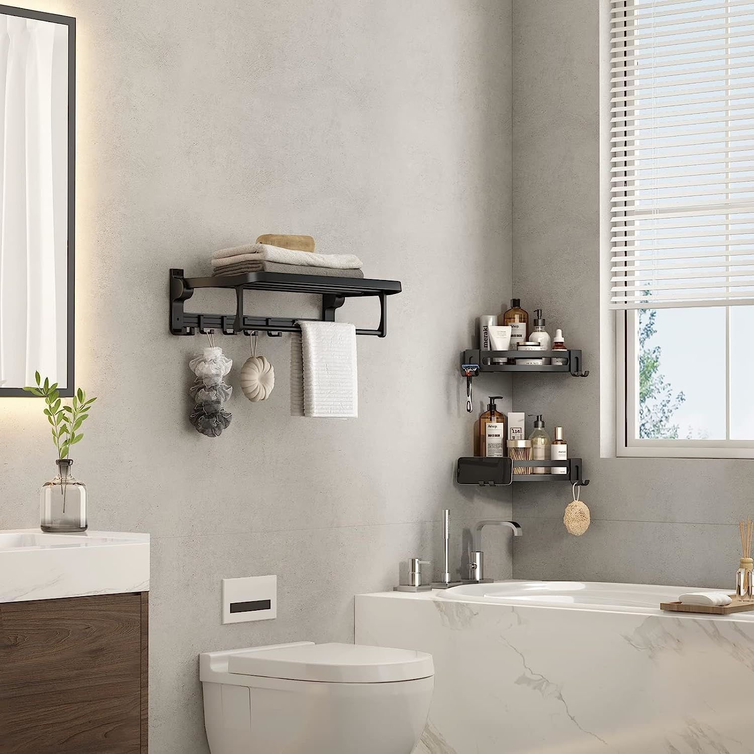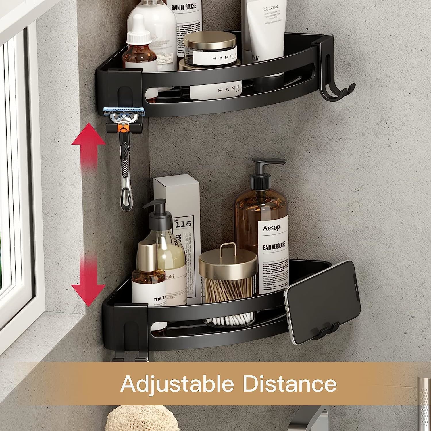 2.Adjustable Distance:Our shower organizer designed for more dynamic placement, easily adjust the distance between layers or even mount them separately.