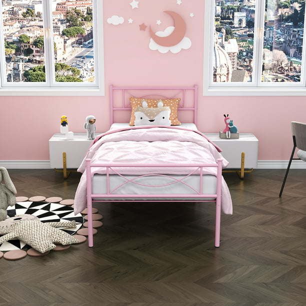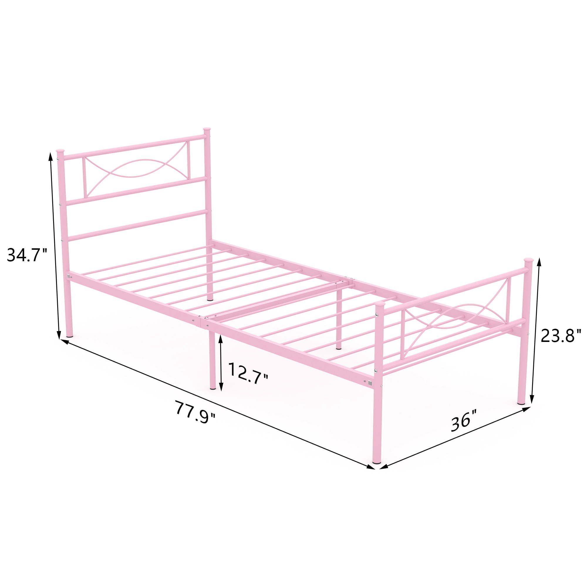 • This sturdy bed frame is the perfect platform to hold your standard twin-size mattress and eliminates the need for a box spring.