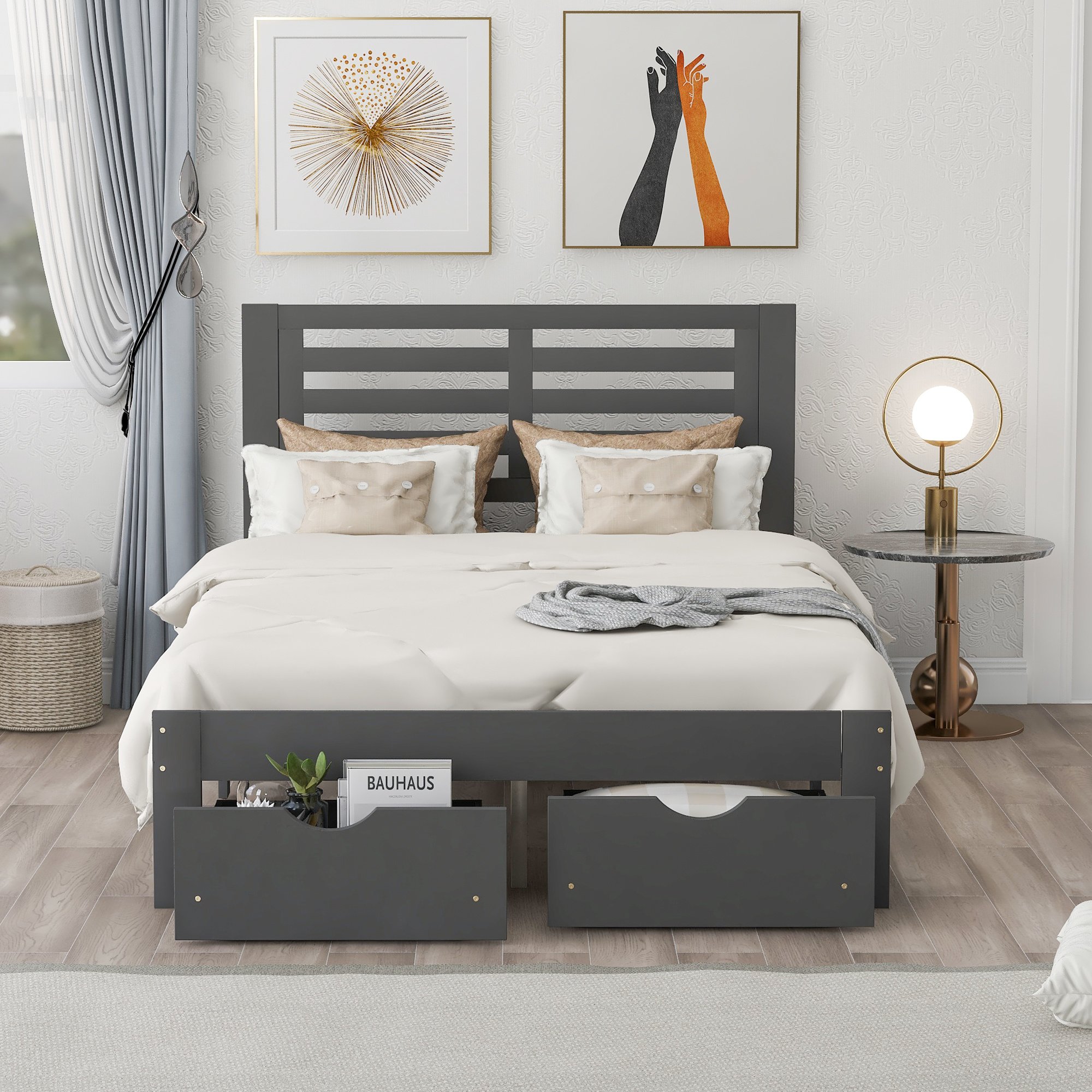 Full Size Platform Bed with Drawers