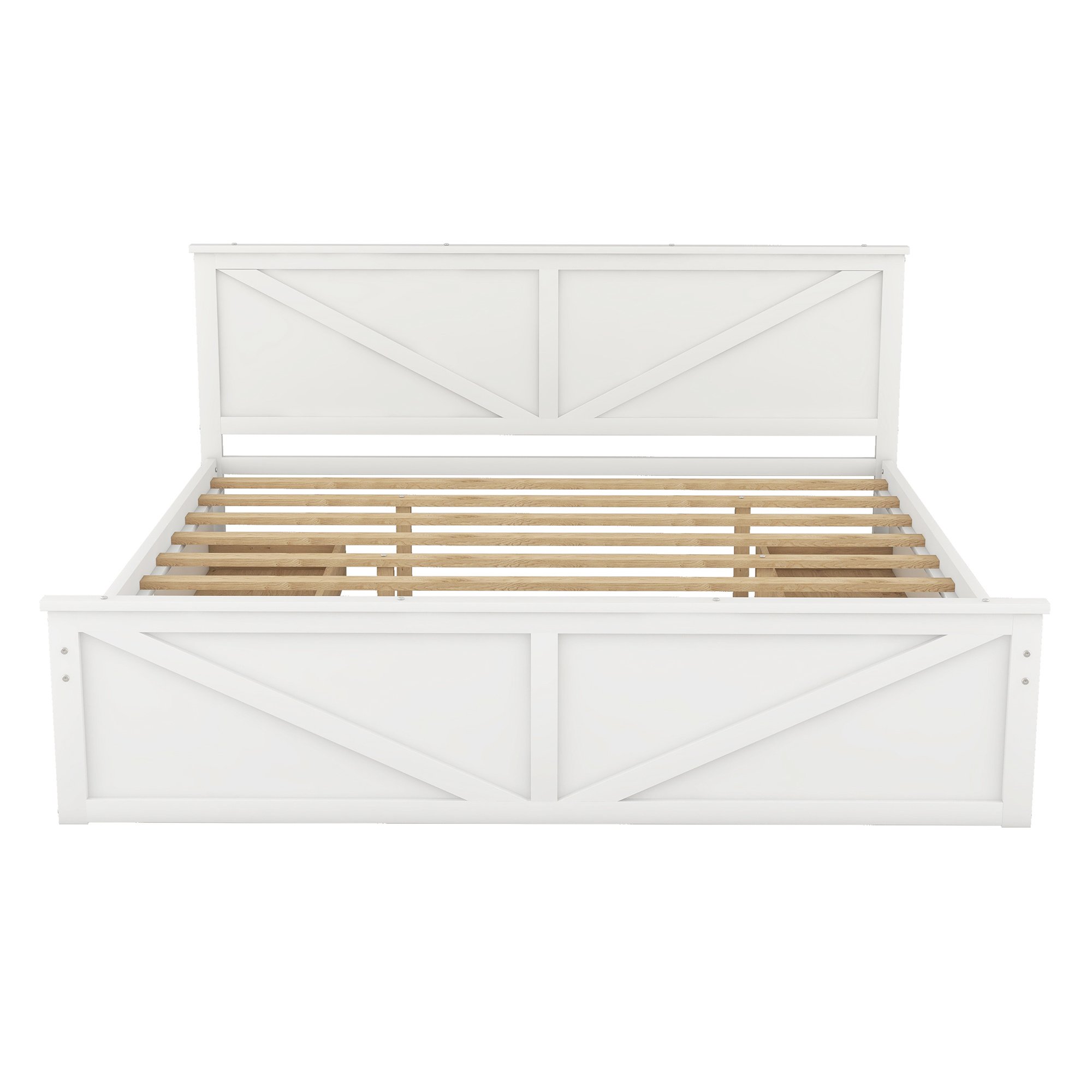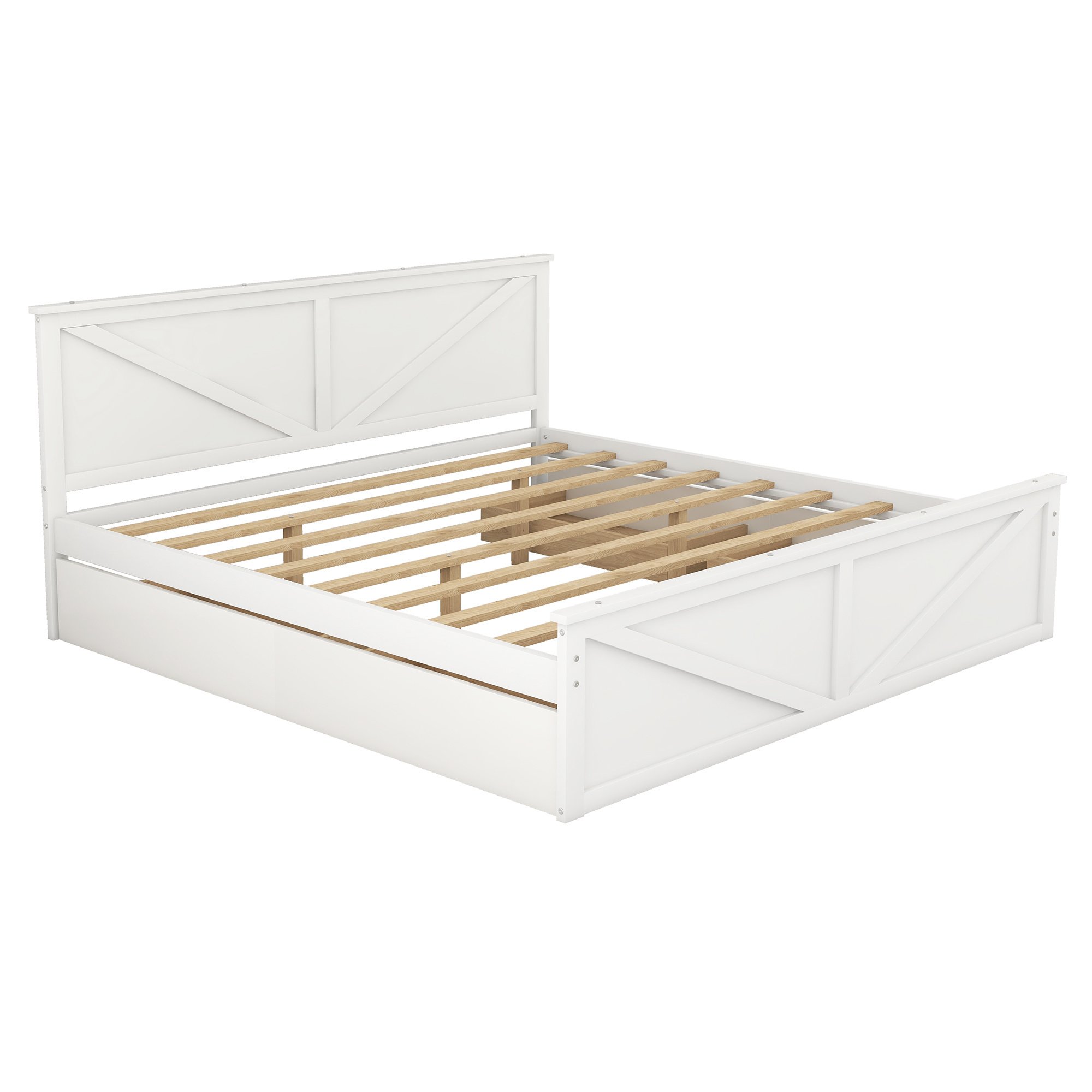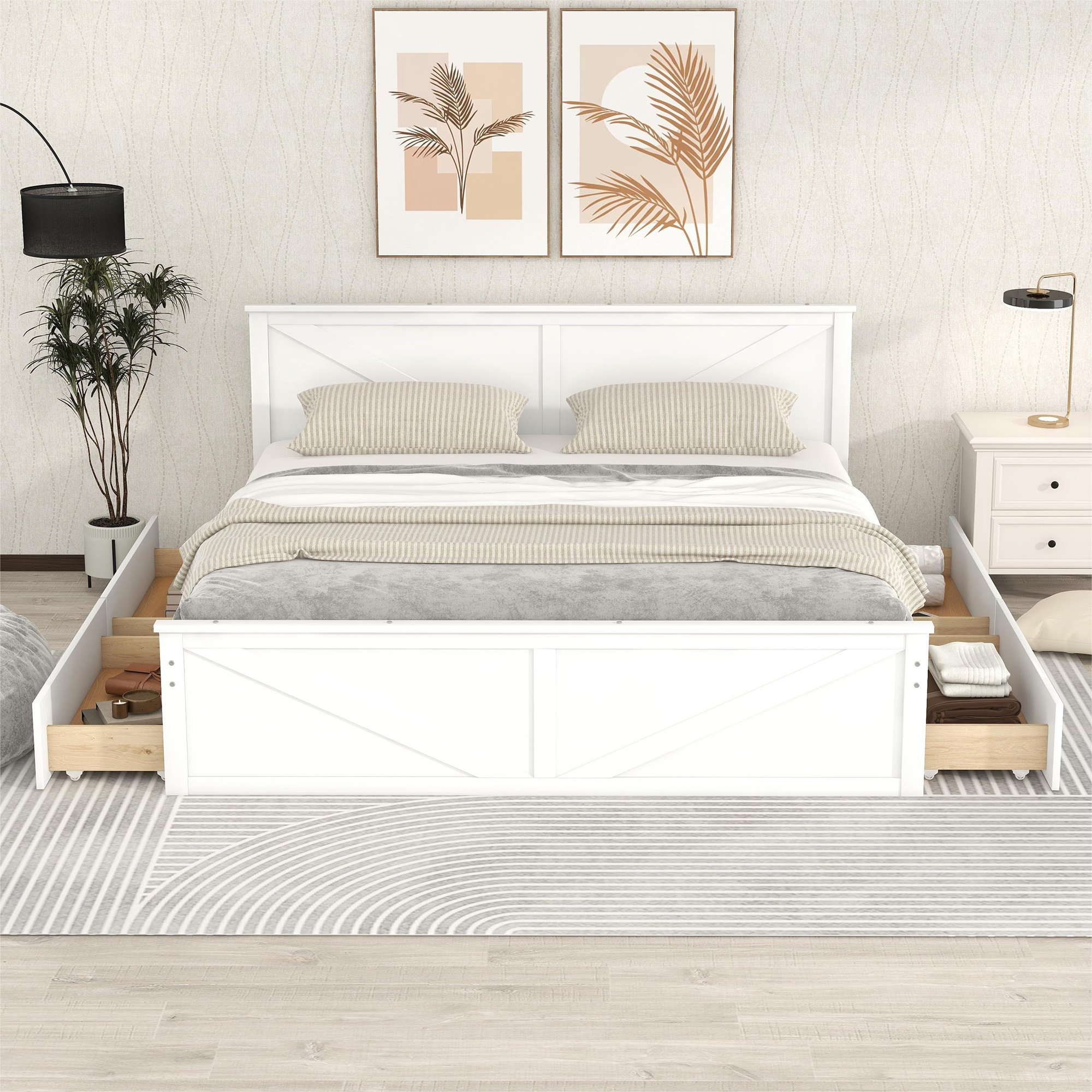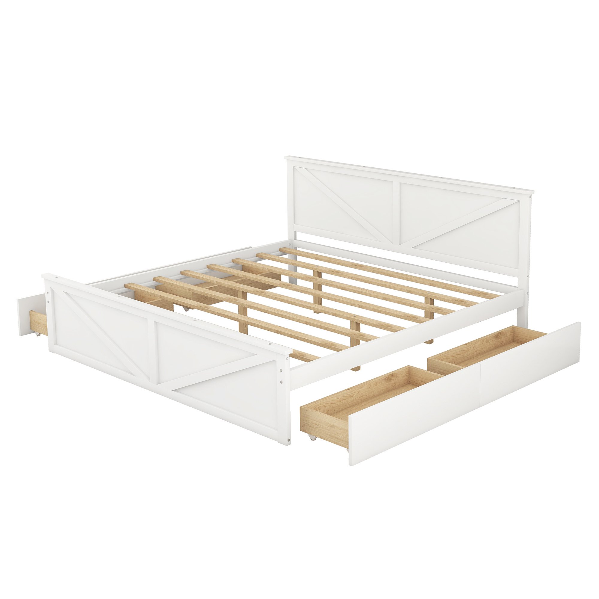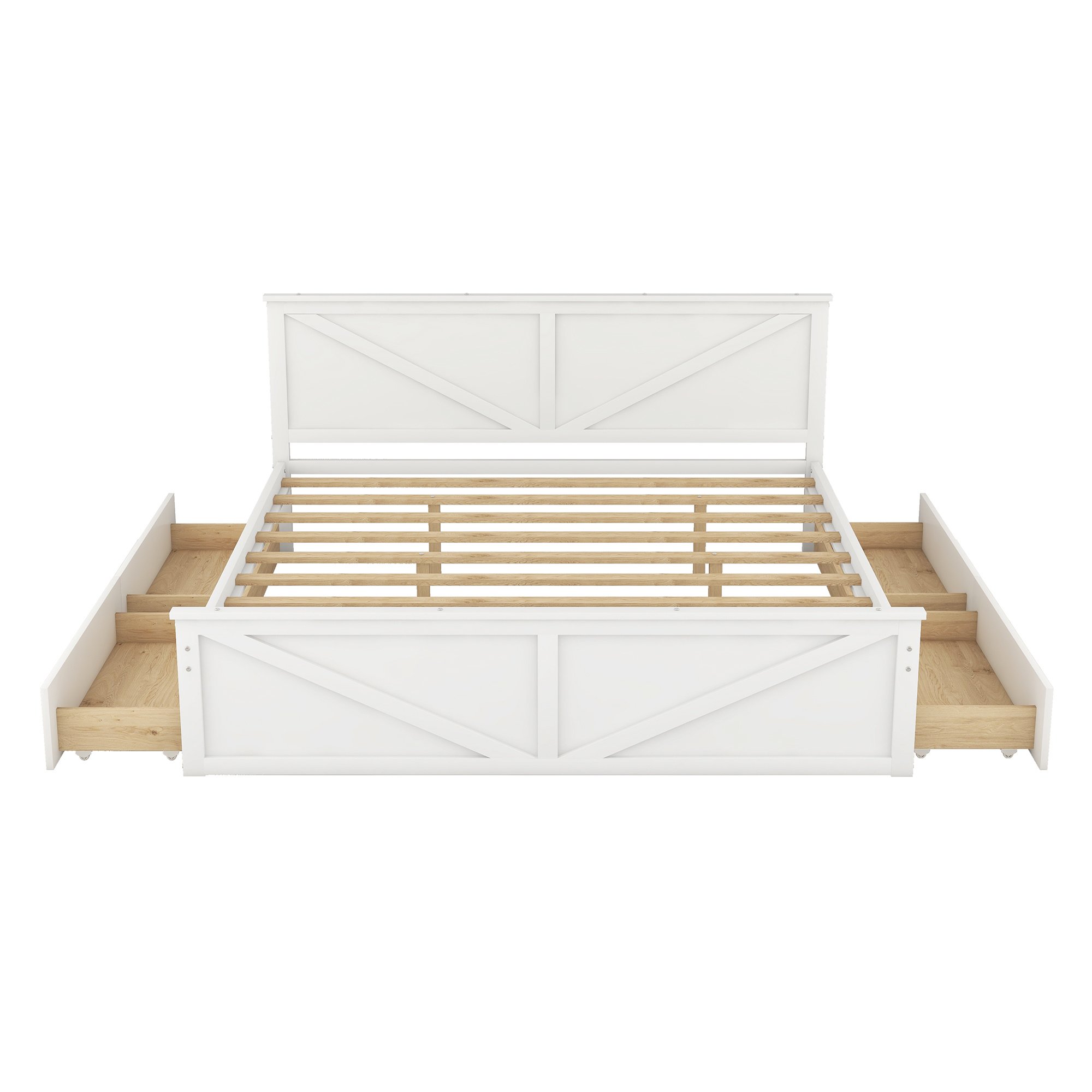 King Size Wooden Platform Bed with Four Storage Drawers and Support Legs