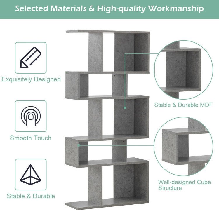 4.Multi-functional Shelf: This 5-tier shelf is perfect to display your books, collectors and your arts, used as a bookcase, display cabinet or room divider for numerous shelves of varying size and shape. And with its compact design, it can be placed in bedroom, kids'room, entryway, living room and corner.