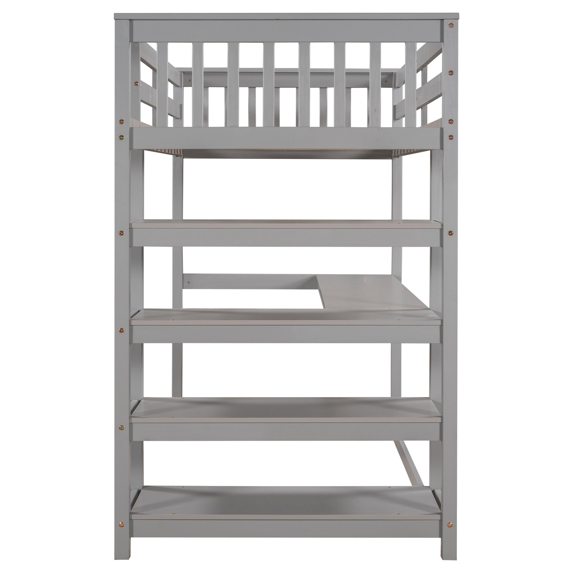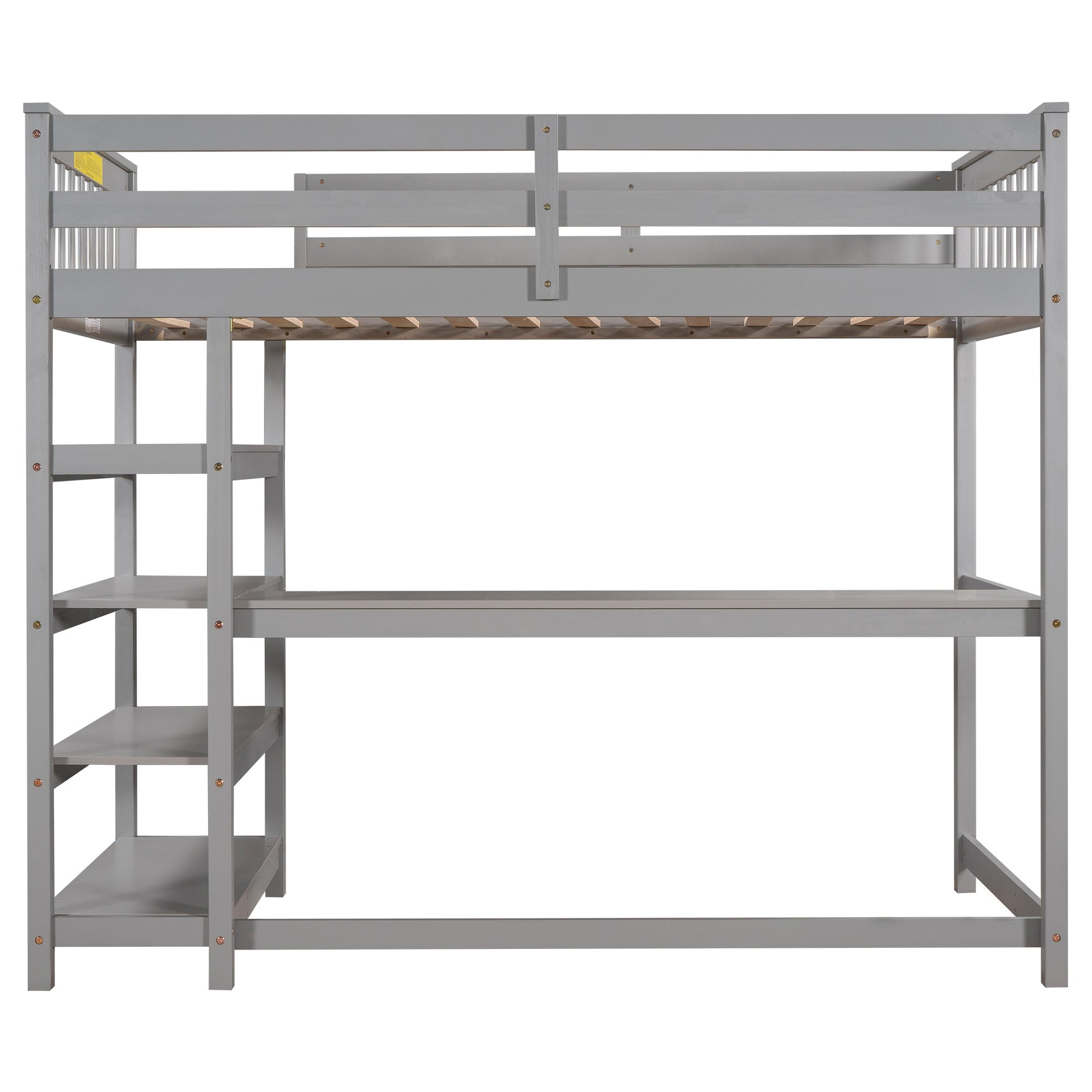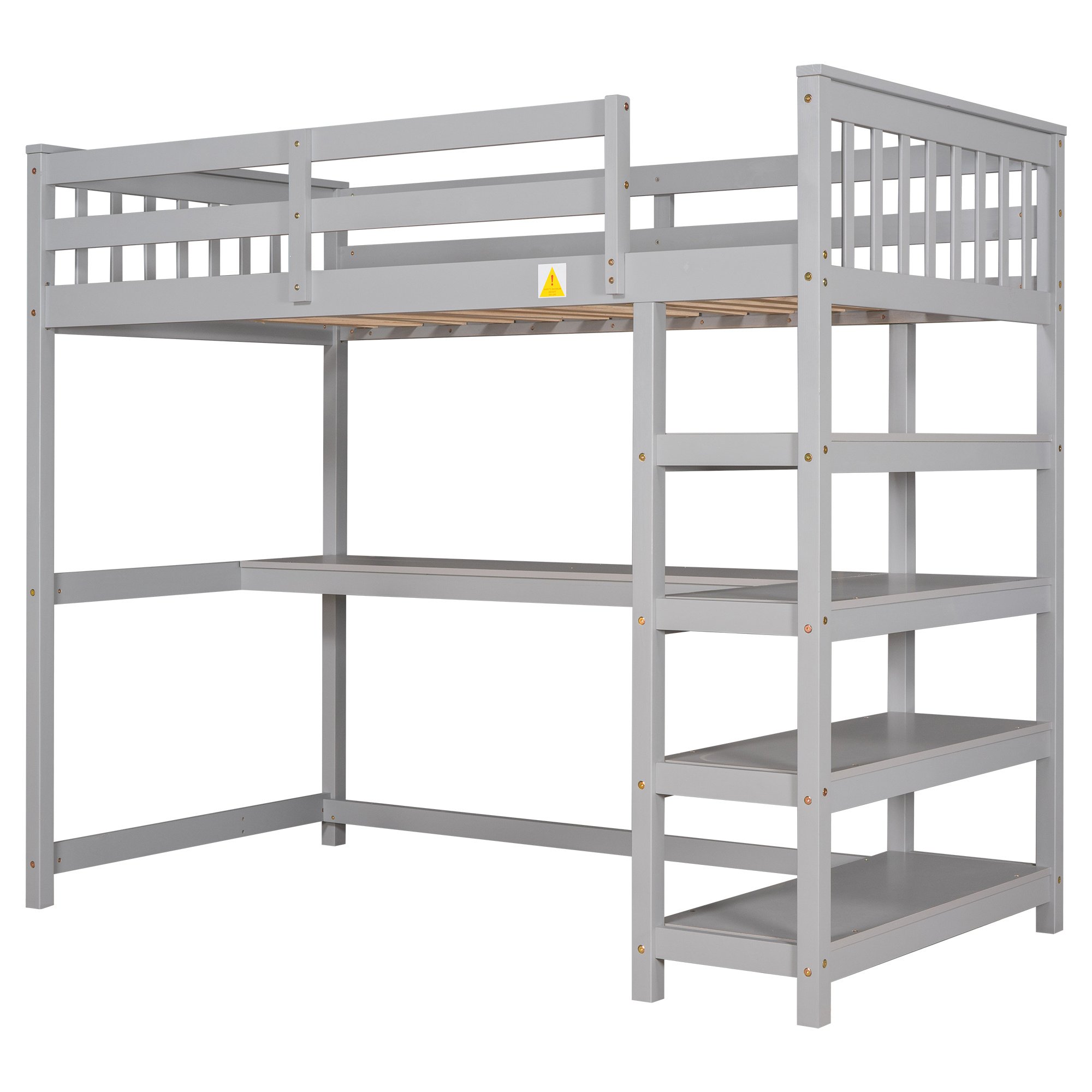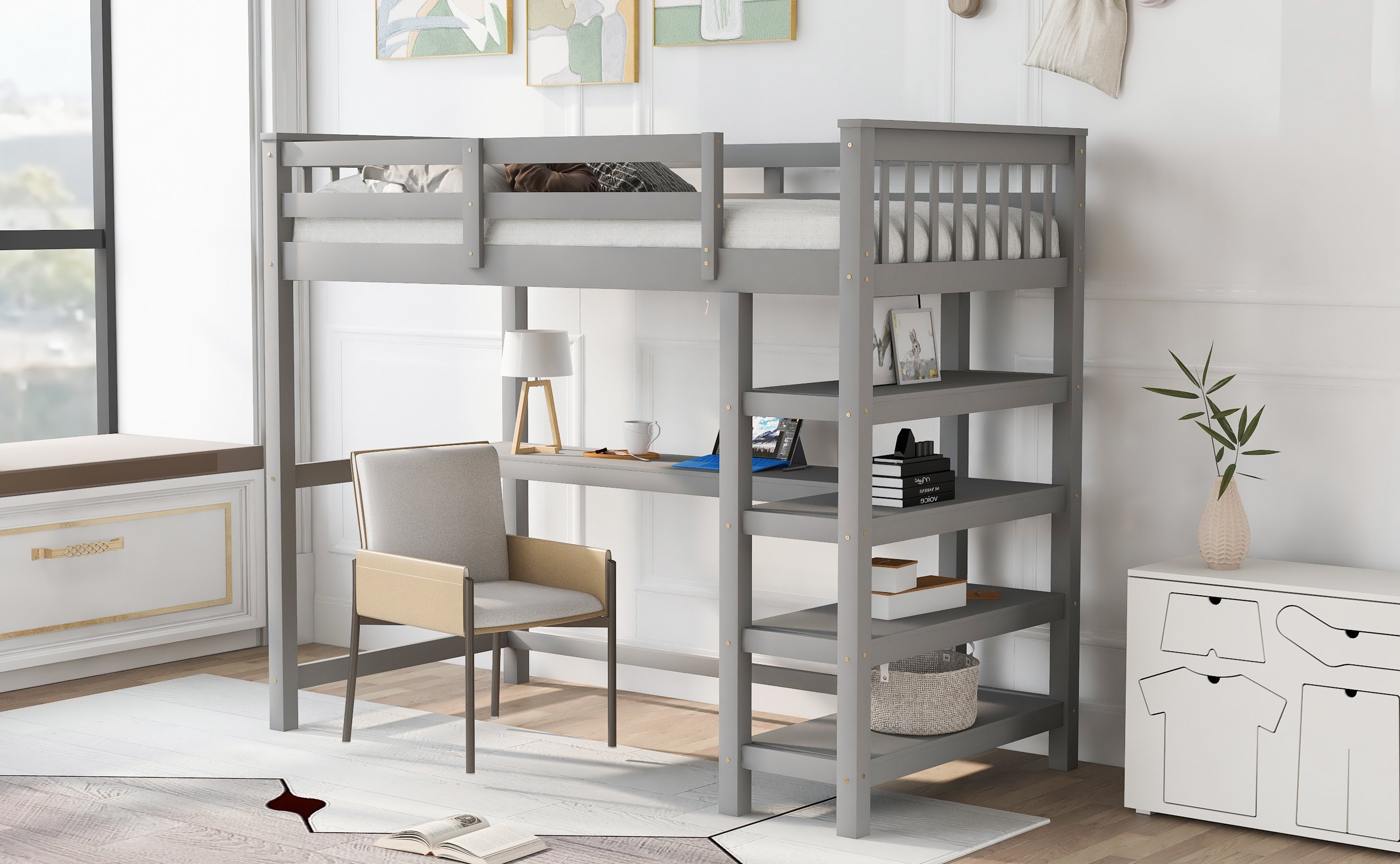Twin Size Loft Bed with Storage Shelves and Under-bed Desk