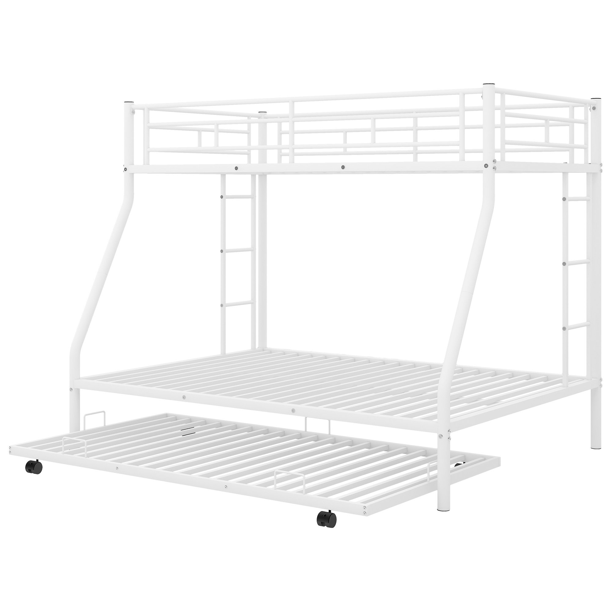 Twin over Full Bed with Sturdy Steel Frame, Bunk Bed with Twin Size Trundle, Two-Side Ladders