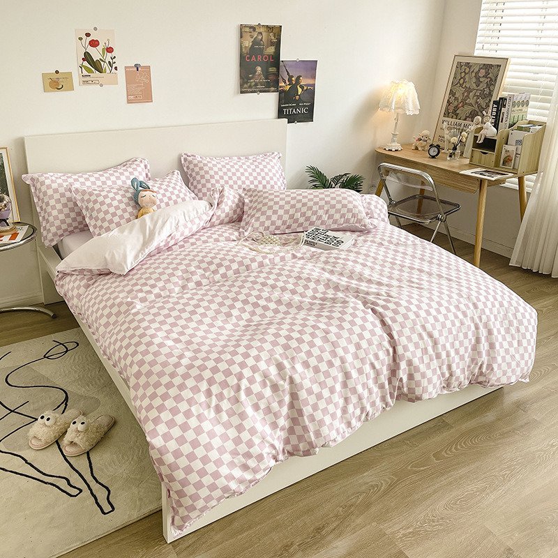 Home > Washed Cotton Bedding 4 Piece Set 1.5m-2.2m Quilt Cover Sheet Pillowcase Plaid Stripes Student Dormitory Adult Child Boys Girls