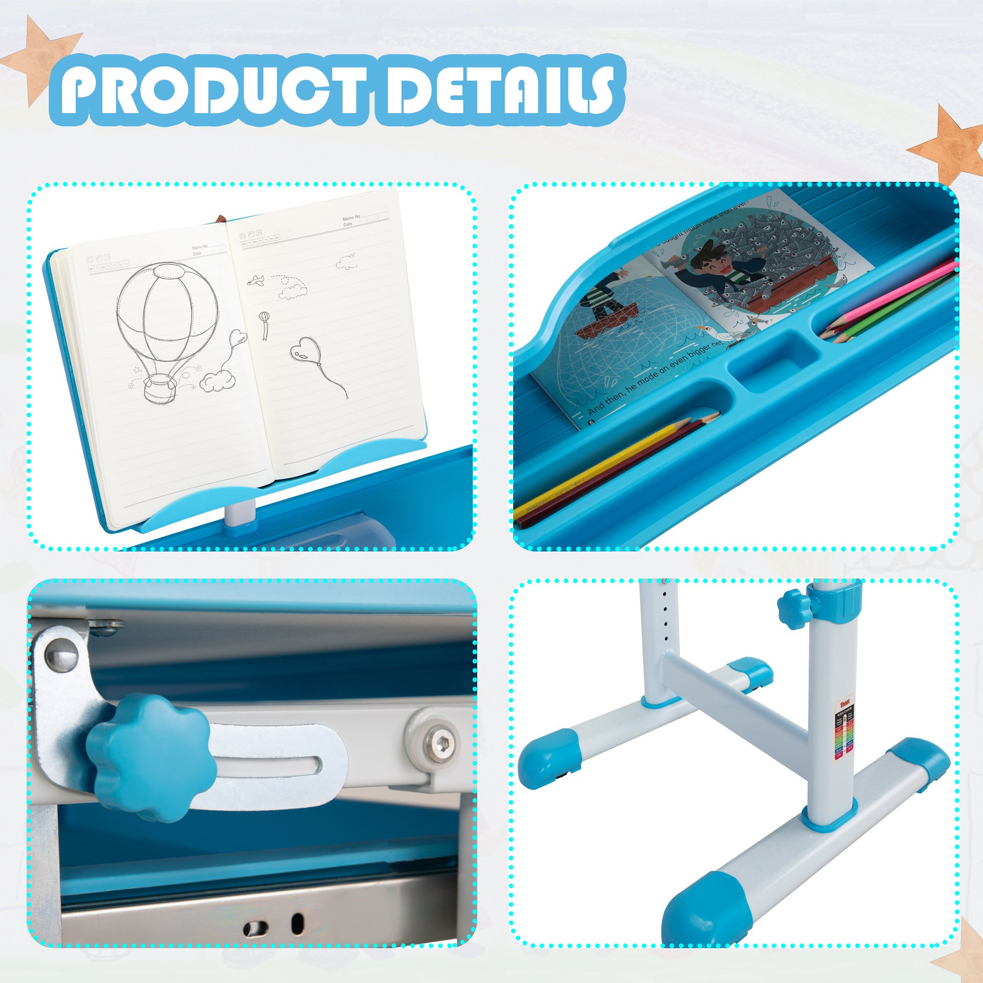 [Table Set for Kids]The table and the chair can both be adjusted at height to fit your child’s growth. Effectively correcting sitting posture and protecting eyesight.