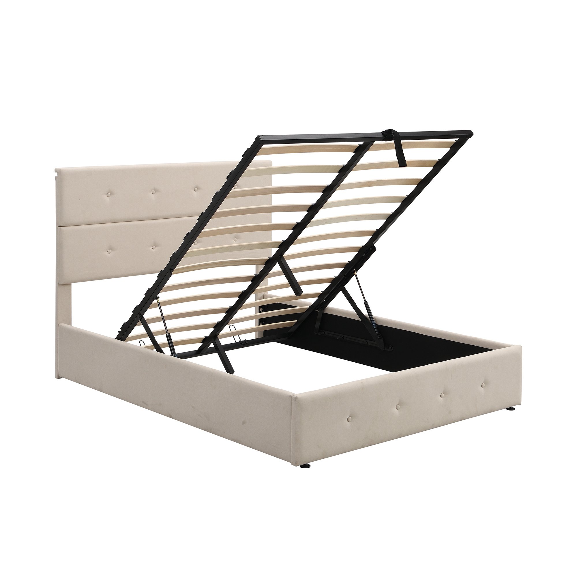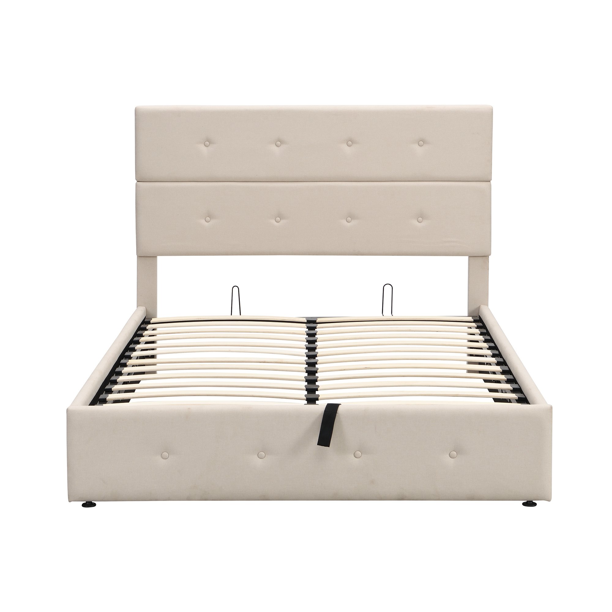Simple and elegant; the upholstered bed with storage will make a lasting impression in your room. With a modern look and a touch of simple style; this bed combines fashion and function. On the one hand; it is upholstered in linen featuring button-tufted details in both the headboard and footboard. On the other hand; it comes with underbed storage that provide extra storage space for your bed sheets; season clothing and accessories. It is designed with a bentwood slat support system that provides incredible ventilation to keep your mattress fresh for longer and does not require a box spring or additional foundation.