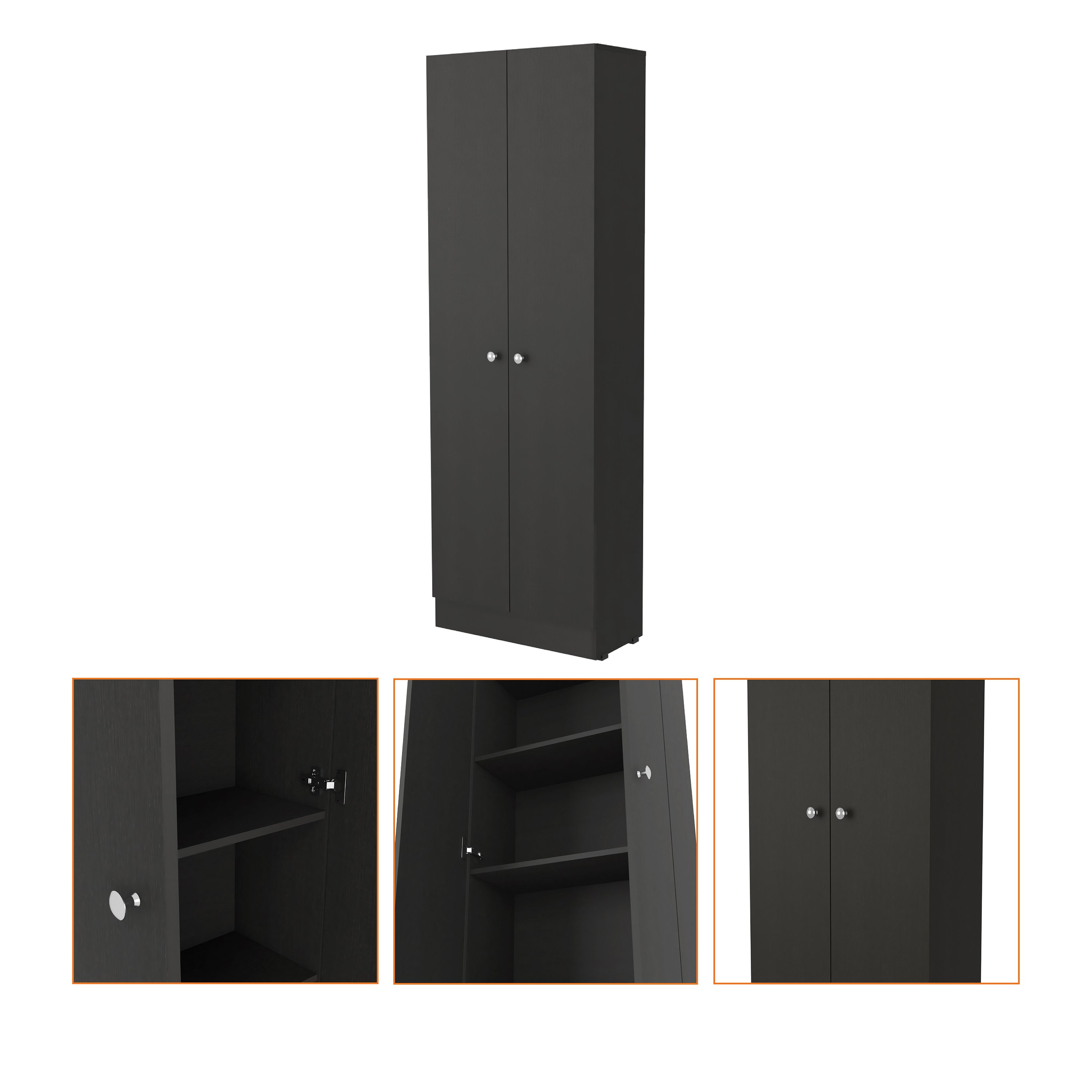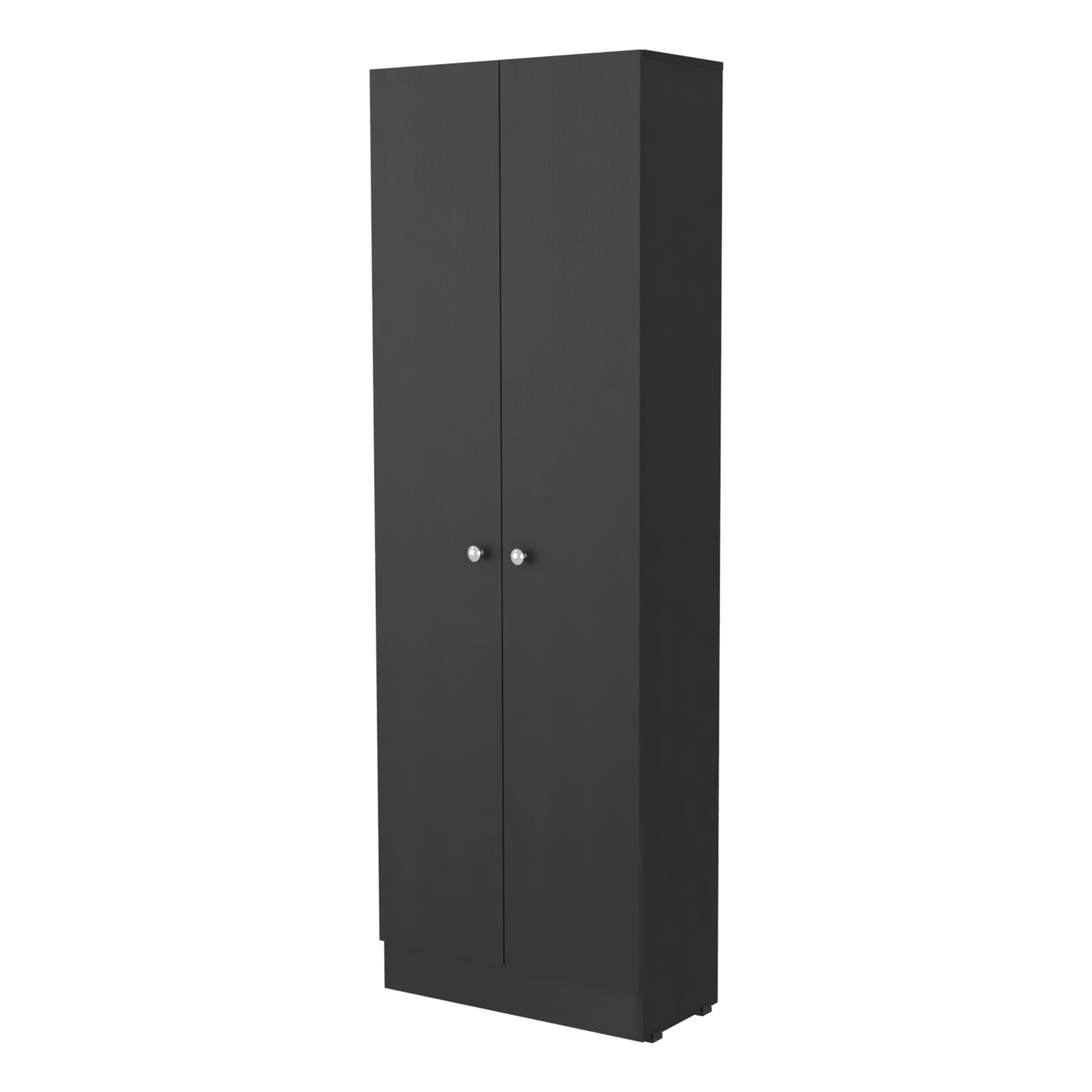 Forget about spending a long time searching for your cooking supplies because you can't remember where you put them. The Buxton Storage Cabinet fits easily into your kitchen; garage; or mudroom without getting in the way or taking up too much space. This spacious two-door cabinet with five shelves provides plenty of room for spices; bottles; ingredients; and other kitchen items you may need or use frequently. Its modern design will change your kitchen's atmosphere; making it feel more fresh; spacious; and organized.Set includes: One (1) storage cabinetDimensions: 71.1 inches high x 23.6 inches wide x 11.8 inches deepFinish Color: Black WengueMaterials: Manufactured woodNumber of shelves: 5-ShelfNumber of doors: 2-DoorTall cabinet with a high storage-space capacity (70" H x 23.6" W x 11.8" D)Five interior shelves (12.9" H x 22" W); the top one is a bit shorter than the rest