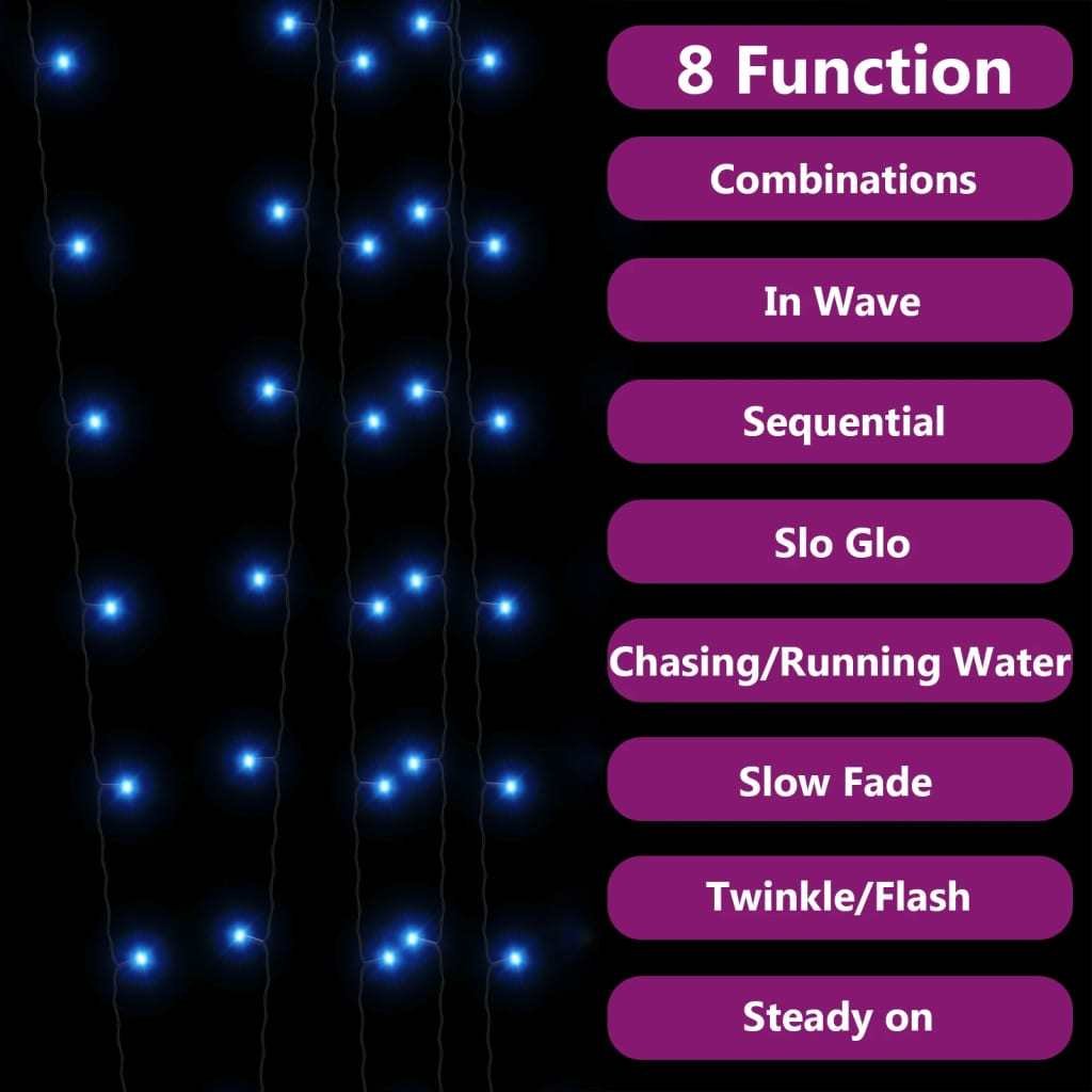 During the day; the efficient solar panel converts sunlight into electrical energy stored in the built-in battery. At night; the fairy lights will light up automatically. The string light is equipped with 200 energy-saving LEDs; creating a magical lighting performance. It has 8 different lighting effects: combination mode; waves; sequential mode; slowly glowing mode; flashing; slowly fading mode; twinkling and continuous lighting. This is a great decorative accessory to illuminate indoor and outdoor spaces.