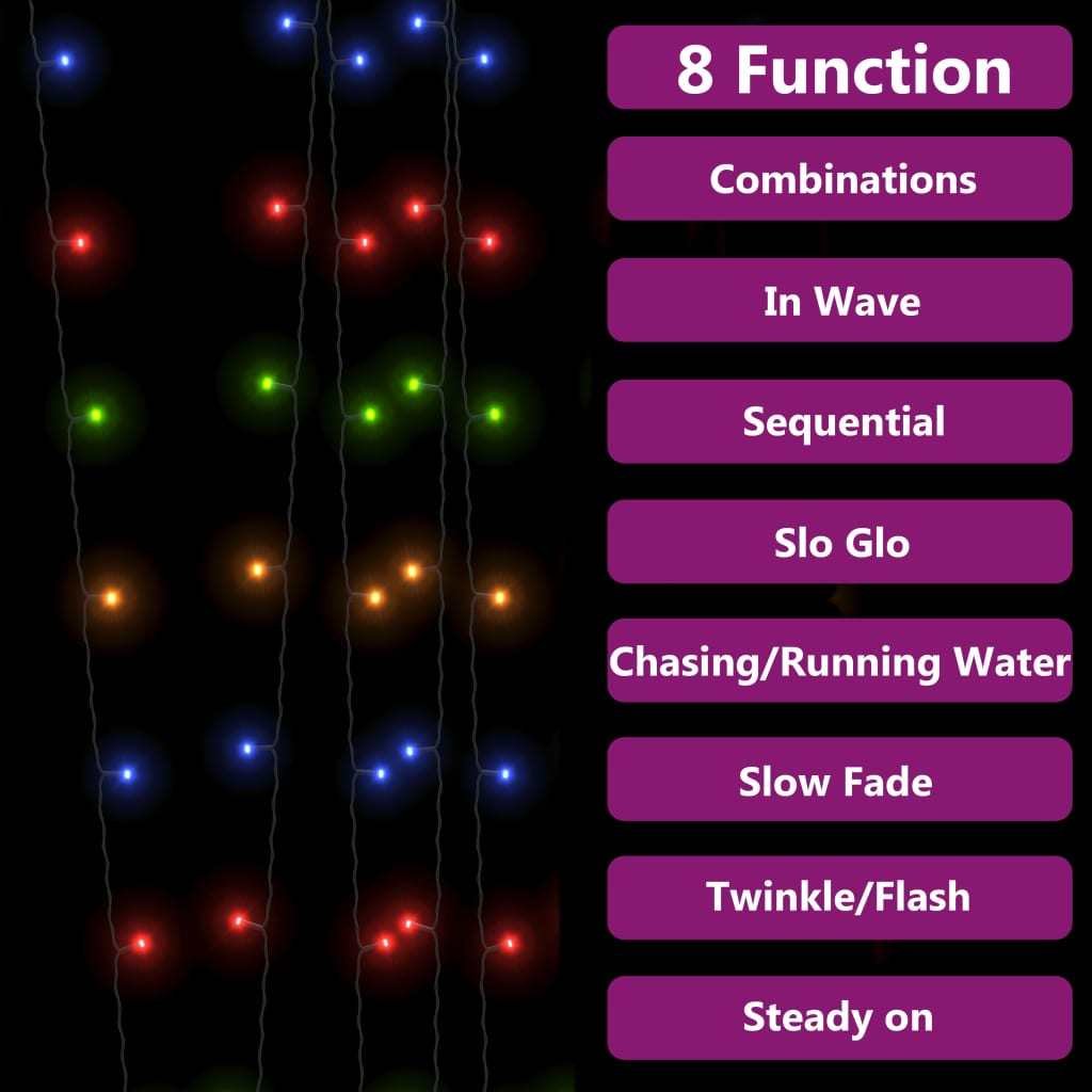 During the day; the efficient solar panel converts sunlight into electrical energy stored in the built-in battery. At night; the fairy lights will light up automatically. The string light is equipped with 200 energy-saving LEDs; creating a magical lighting performance. It has 8 different lighting effects: combination mode; waves; sequential mode; slowly glowing mode; flashing; slowly fading mode; twinkling and continuous lighting. This is a great decorative accessory to illuminate indoor and outdoor spaces.