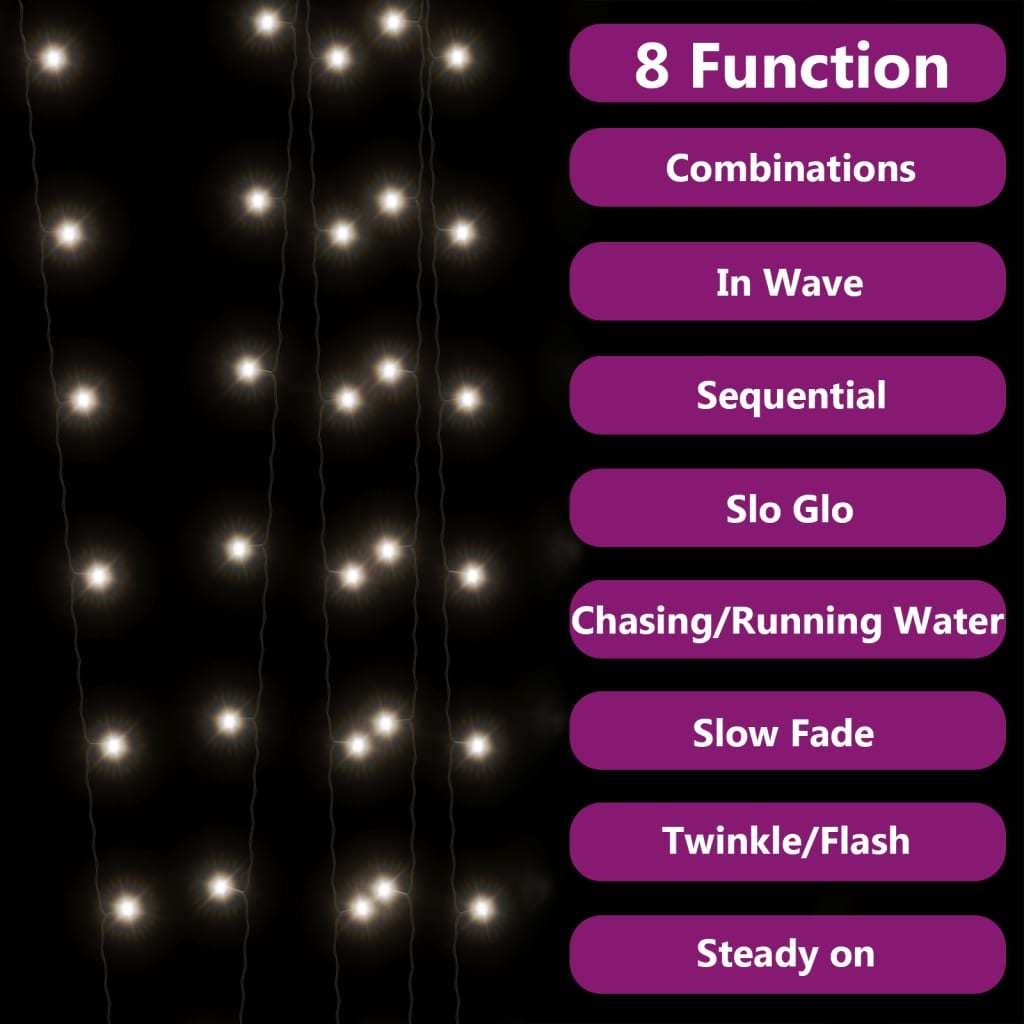 During the day; the efficient solar panel converts sunlight into electrical energy stored in the built-in battery. At night; the fairy lights will light up automatically. The string light is equipped with 200 energy-saving LEDs; creating a magical lighting performance. It has 8 different lighting effects: combination mode; waves; sequential mode; slowly glowing mode; flashing; slowly fading mode; twinkling and continuous lighting. This is a great decorative accessory to illuminate indoor and outdoor spaces.