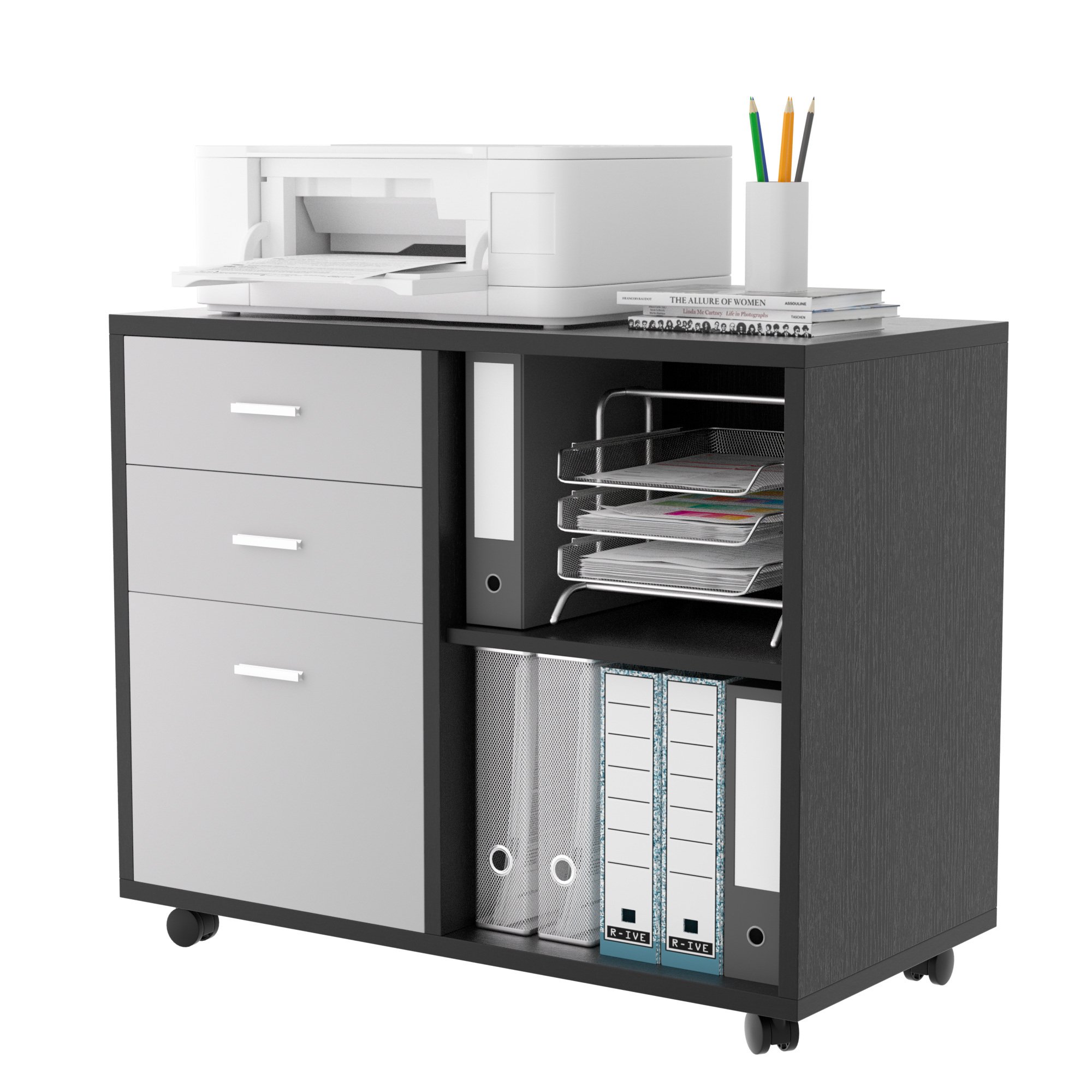 32'' Wide 3 -Drawer Mobile Lateral Filing Cabinet; Black oak and Grey File Cabinet with Printer Stand for Home Office 32'' Wide 3 -Drawer Mobile Lateral Filing Cabinet; Black oak and Grey File Cabinet with Printer Stand for Home Office 32'' Wide 3 -Drawer Mobile Lateral Filing Cabinet; Black oak and Grey File Cabinet with Printer Stand for Home Office 32'' Wide 3 -Drawer Mobile Lateral Filing Cabinet; Black oak and Grey File Cabinet with Printer Stand for Home Office 32'' Wide 3 -Drawer Mobile Lateral Filing Cabinet; Black oak and Grey File Cabinet with Printer Stand for Home Office 32'' Wide 3 -Drawer Mobile Lateral Filing Cabinet; Black oak and Grey File Cabinet with Printer Stand for Home Office 32'' Wide 3 -Drawer Mobile Lateral Filing Cabinet; Black oak and Grey File Cabinet with Printer Stand for Home Office