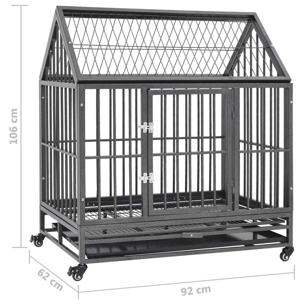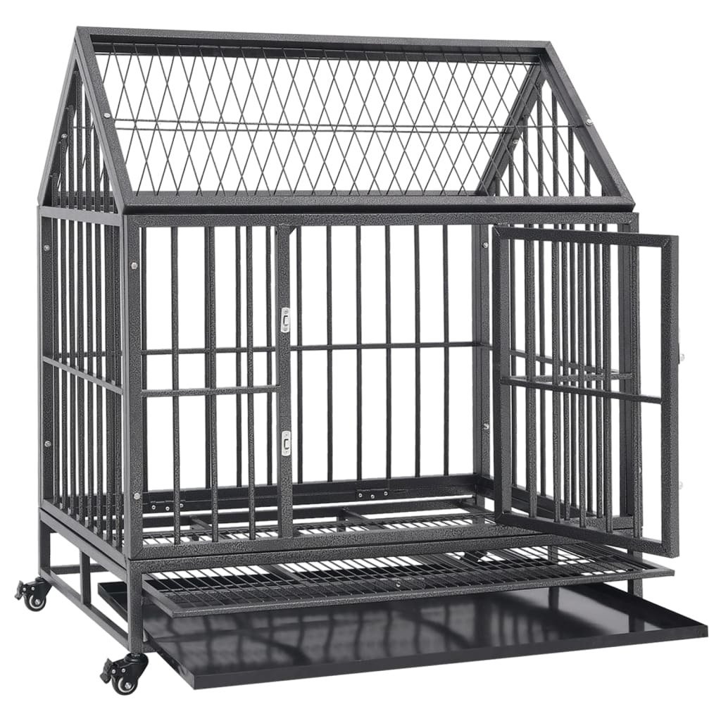 Dog Cage with Wheels and Roof Steel 36.2"x24.4"x41.7"