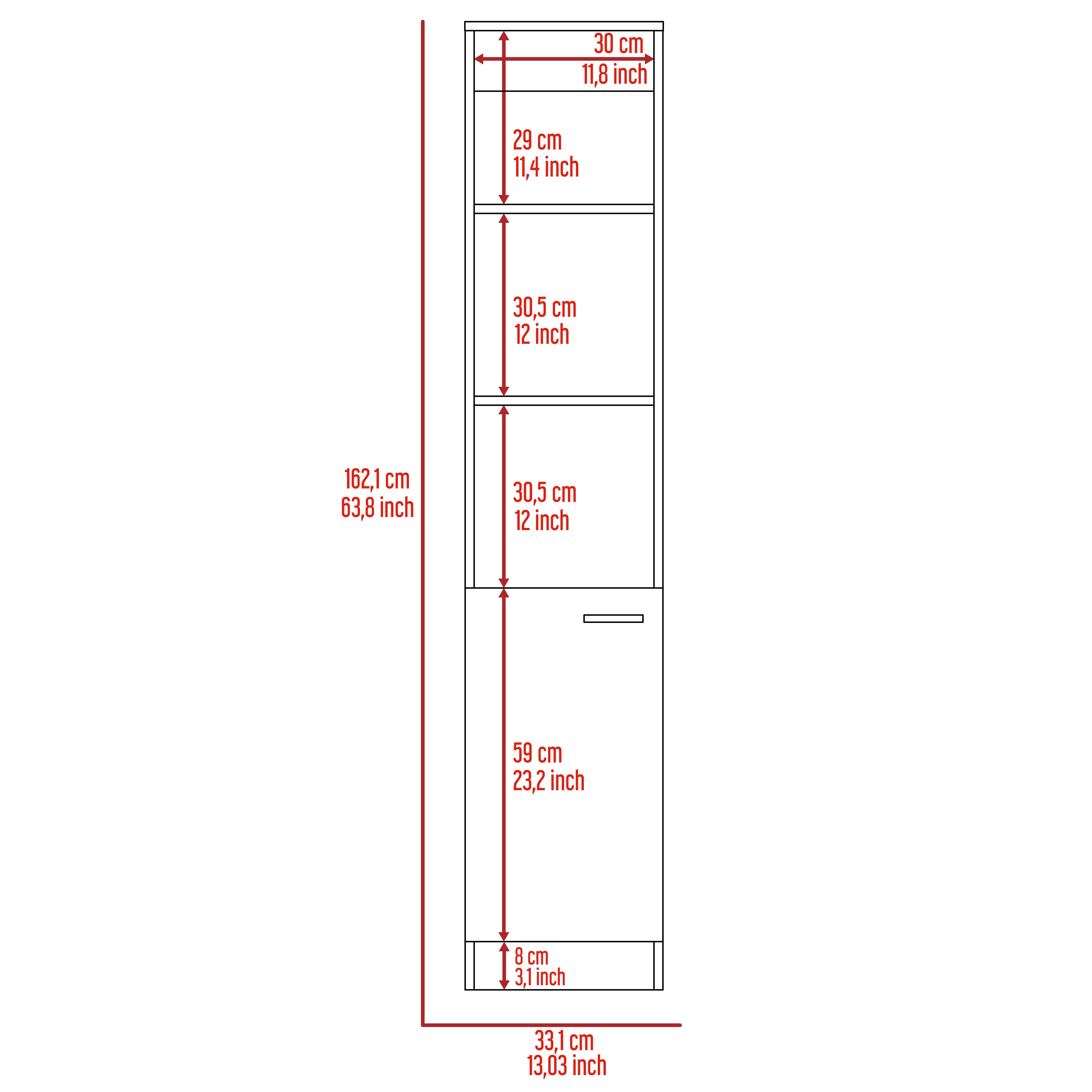 Part of the exclusive Malaga Collection; this cabinet will provide you with an authentic look in your space with modern styling for its weathered oak manufactured wood finish.Featuring three tall exterior open shelves (30; 5''H X 11; 8''W); this product is ideal for your bathroom; kitchen; bedroom; or garage. Multiple shelves and a covered cabinet (23; 2'' H X 11; 8''W) give you plenty of storage options. Easy and ready to assemble furniture with full warranty.