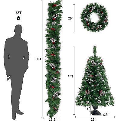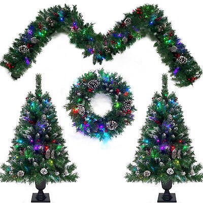 Pre-lit Xmas Tree Artificial Christmas 4-Piece Set,Garland, Wreath and Set of 2