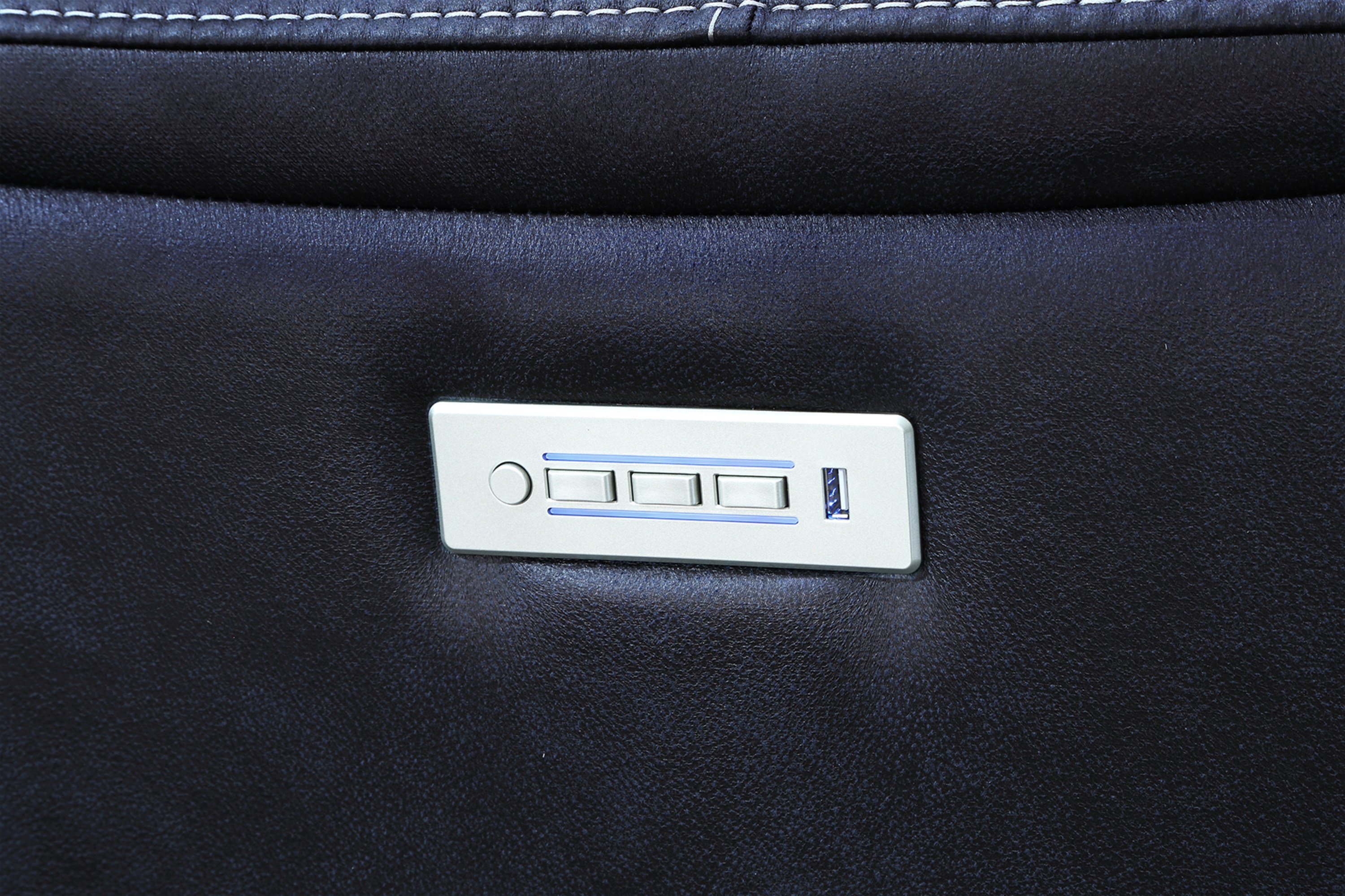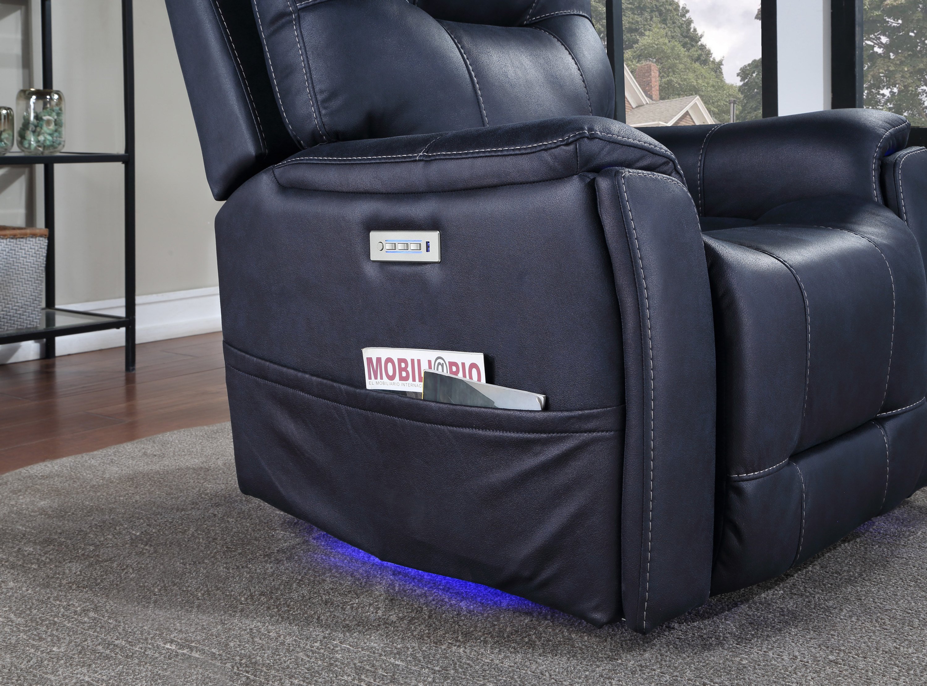 Triple-Power Recliner with Lighted Cupholders - Ocean Blue Leatherette, Transitional Design