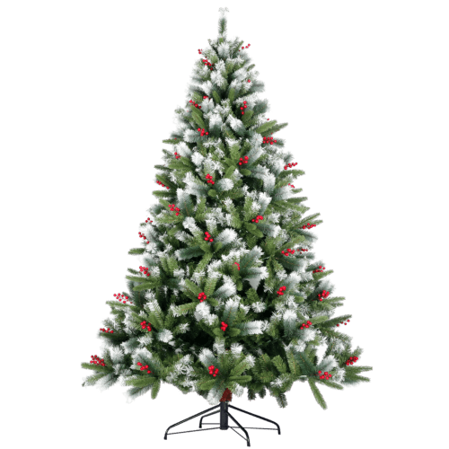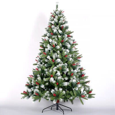 Artificial Christmas Tree Flocked Pine Needle Tree with Cones Red Berries 7.5 ft Foldable Stand