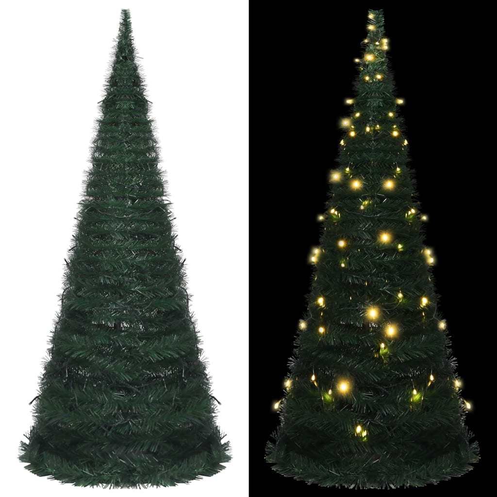 Pop-up String Artificial Christmas Tree with LED Green 7 ft