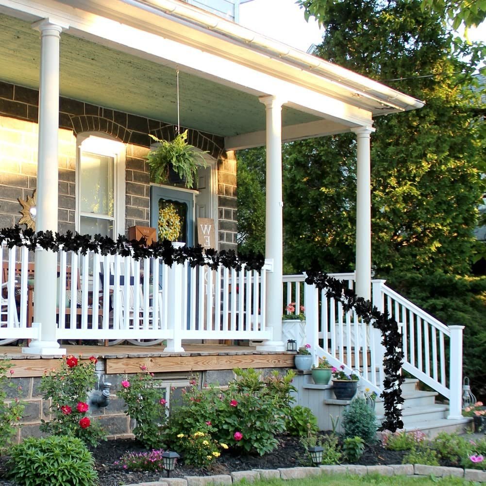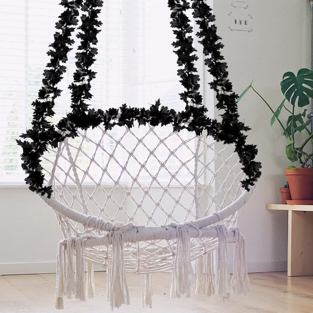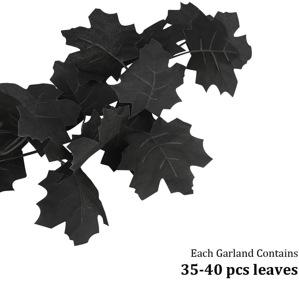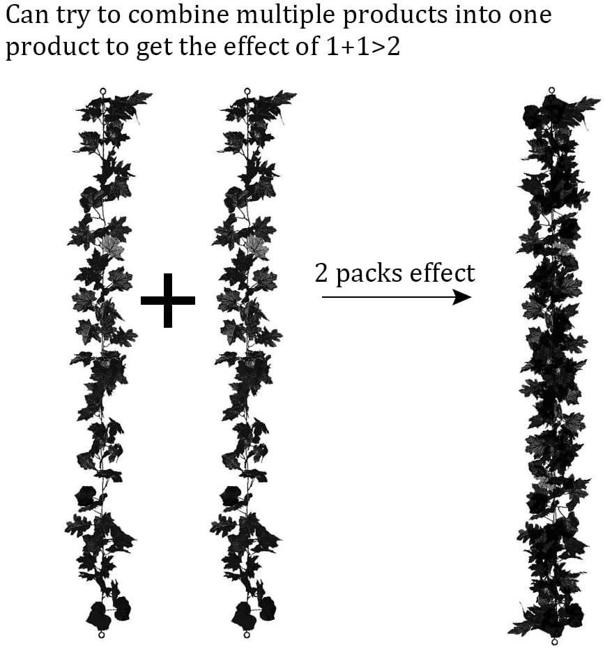 [Artificial Garlands'Package]- 2 pieces of 5.9 feet/piece artificial maple leaf garlands(Black), total length: 11.8 feet, plus 4 hooks to hanging. The package also contains two packs of 3D stickers, so you can dress up your room as you like[Artificial Foliage Garland]- These maple leaves are made of delicate silk cloth, and the branches drape effortlessly since they are made of high-quality and flexible plastic. We add vein on the foliage to make it look like the real fallen leaves, and leaves don't come off when you are arranging them, durable and vivid[Hanging Fall Maple Leaf Garland]- The maple leaf garland is an ideal choice for balcony ,garden,indoor,outdoor,restaurants,office. As a hanging fake plant,it can also decorate home clearance,balcony,table,door,swing stand,stair banisters, and fireplace many more. Great decorations for Indoor and outdoor[Multiple Matching Methods]- It easy to connect multiple strands to create a long garland you need or cut the vine into a shorter garland. Hether you only need 6 feet for the mantel, 12 feet are draping over a doorframe, or 24 feet for the stair railings, this garland has you covered[Simple to Use]- Compared with real flowers, our artificial plants do not require careful maintenance. You only need to simply place the artificial plants on the table or hang them on the door to achieve the decorative effect. After using the product, the product can be cleaned up and stored in a sealed packaging bag. This will save you a lot of time