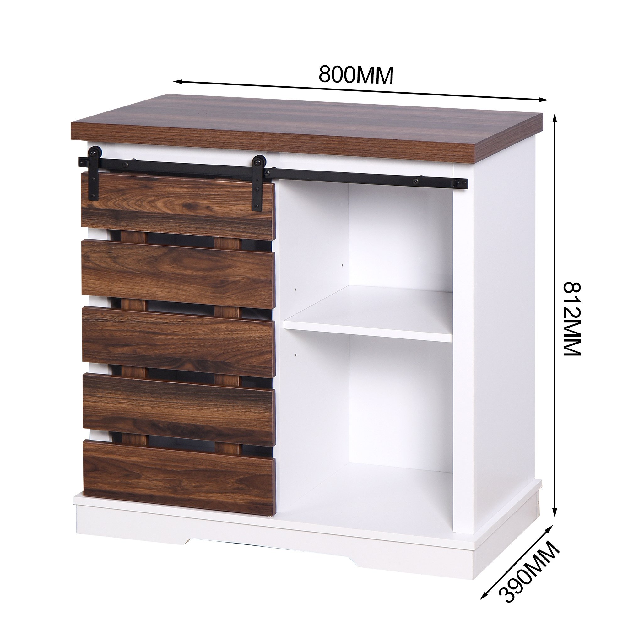 Ample Classified Storage:Storage Cabinet with sliding barn door and 2 inner shelf for convenient storage. You can put fruits, vegetables, and kitchenware materials for peacetime.There's plenty of storage space in this spacious floor cabinet for Entryway Bar Kitchen Dining Storage Cabinet Living Room.Easy Sliding Door: Our sliding storage cabinet is built with single slat door running on a metal rod and two sets of pulleys. Thanks to this structure, this sliding style does a good job of saving space and thus is great for small rooms.Easy to Assemble and Clean:This cabinet unit is quite easy to assemble and all mounting hardware is included.The wooden smooth surface is waterproof and easy to keep clean with a damp cloth.