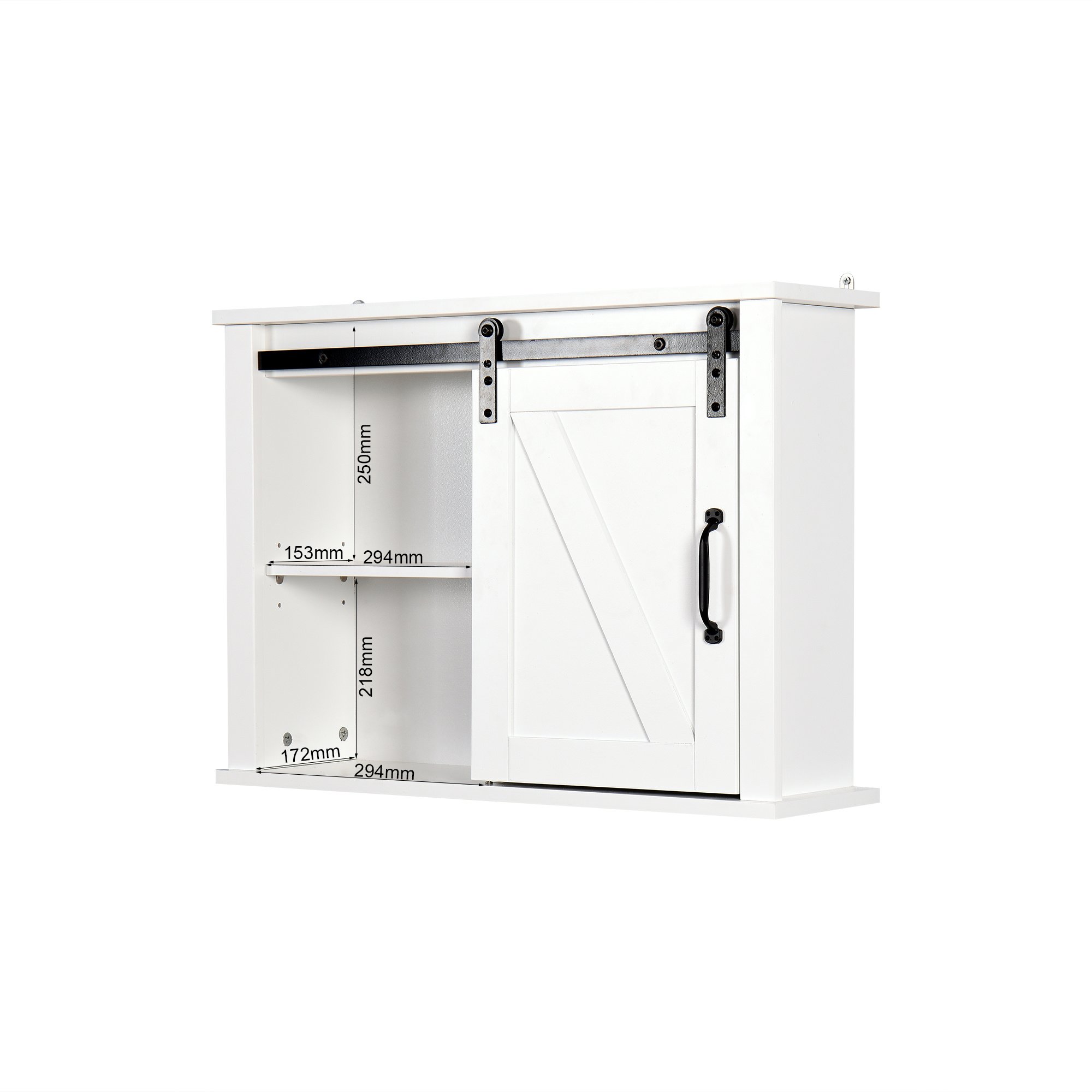 VINTAGE FARMHOUSE CHARM: The Wall Storage Cabinet provides function and style with decorative charm. The rustic wooden white-washed finish and sliding barn door adds a classic addition to your home decor