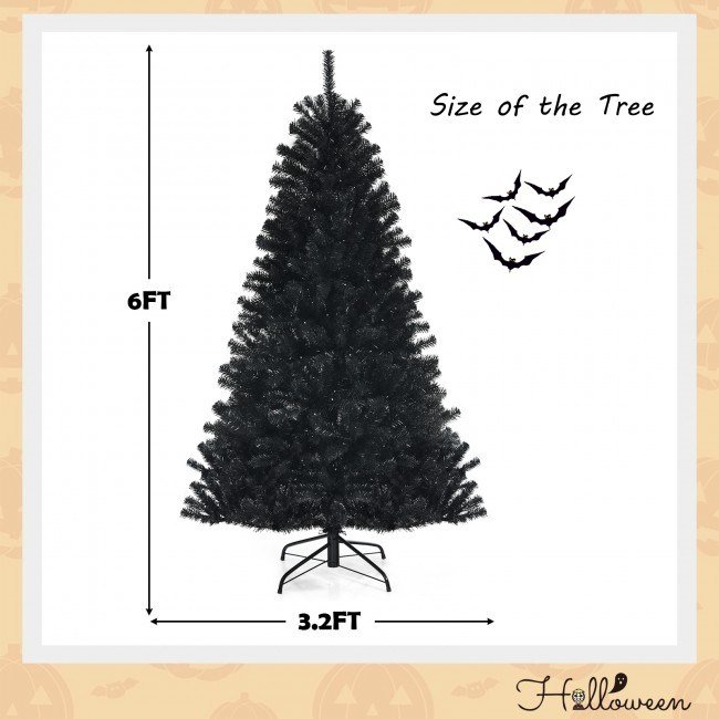 Our multi-purpose black artificial tree is a good choice for you. It can be decorated into a classic Christmas, or a spooky Halloween tree. The 6ft black artificial tree with 680 crafted branch tips looks dense and rich in appearance. Equipped with 250 LED lights, this prelit artificial tree will light your room with a mysterious purple lights. Nobody will refuse such a realistic and full-bodied decoration tree. And it leaves enough space for you to DIY with your preferred ornaments. Feel free to be creative! The quality of the tree is also reliable. 100% new PVC tips and strong metal stand ensures its long service life and outstanding performance.
