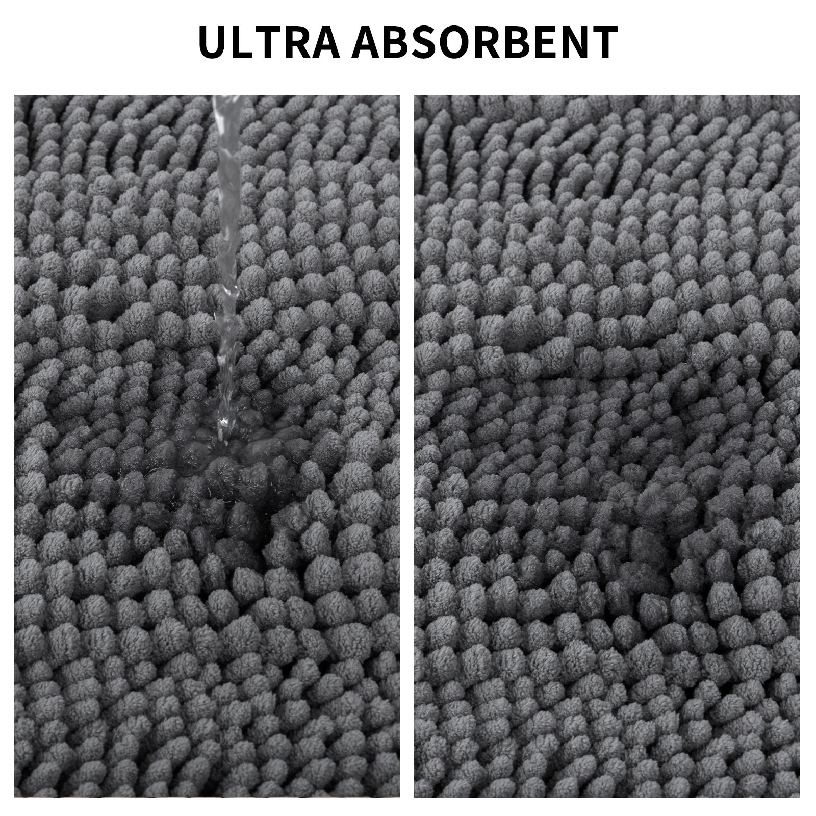 EXTRA ABSORBENT-High-pile; thick Chenille fabric helps save your floors from dripping water while you're stepping out of the bath or shower.These rugs can soak up the water and keep your floor dry like a jaint sponge; keeping the floor dry for a long time