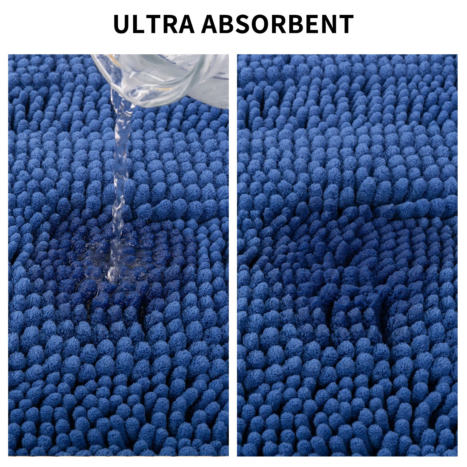 EXTRA ABSORBENT-High-pile; thick Chenille fabric helps save your floors from dripping water while you're stepping out of the bath or shower.These rugs can soak up the water and keep your floor dry like a jaint sponge; keeping the floor dry for a long time