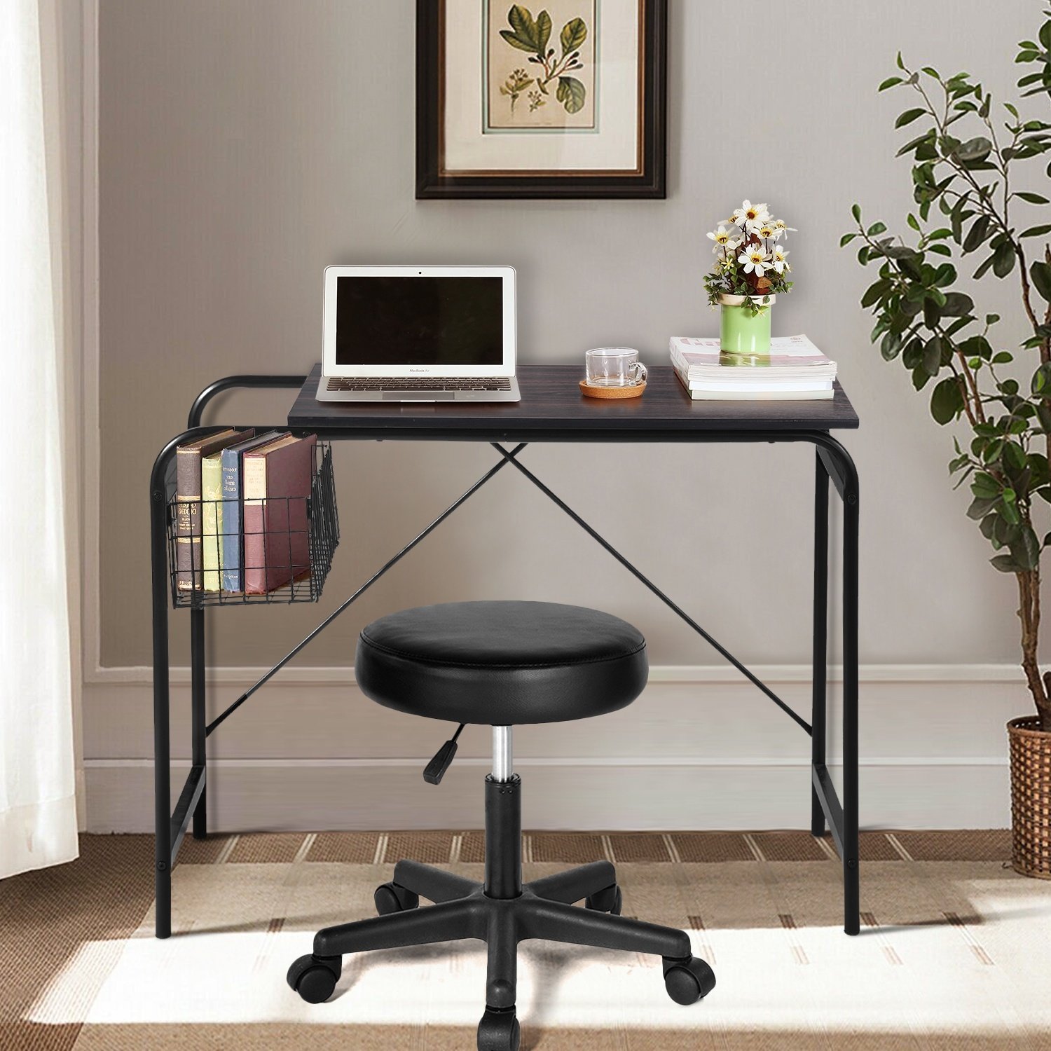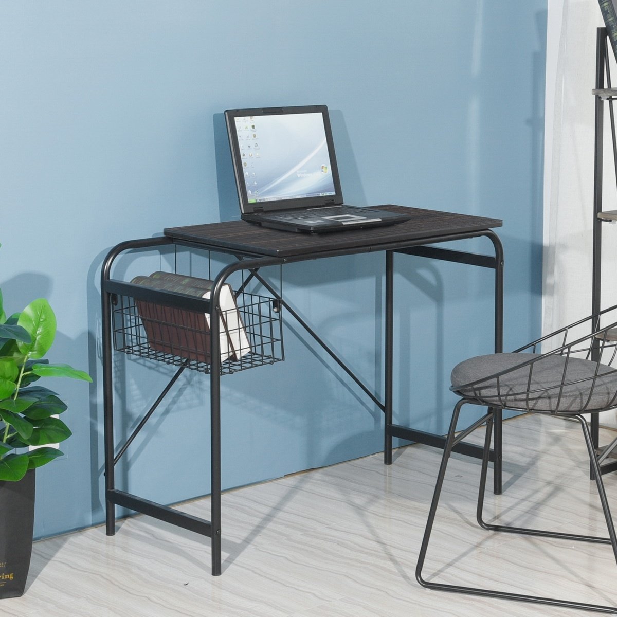 Home > 31.5" Computer Desk/ Home office desk With Wire Storage Basket - walnut & black