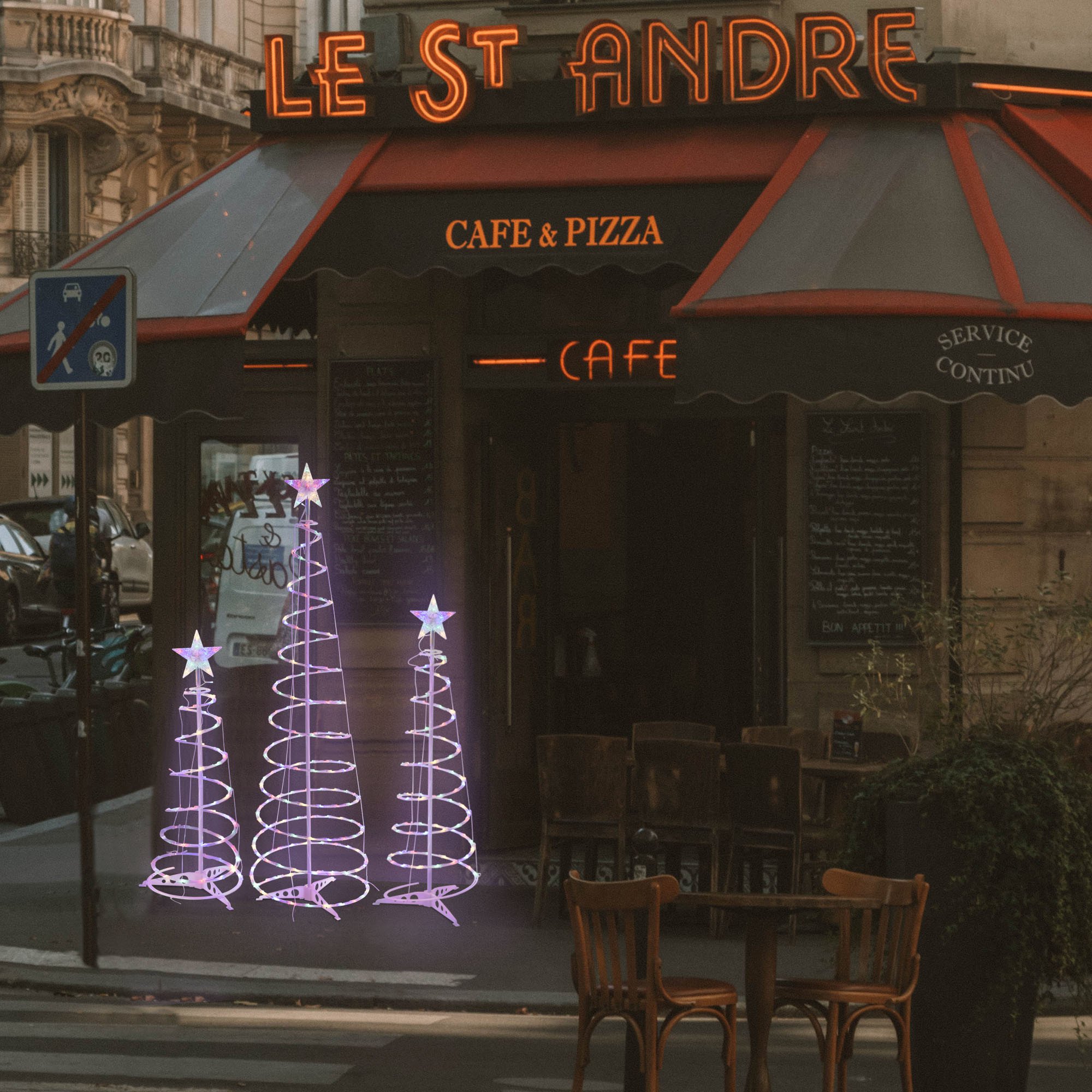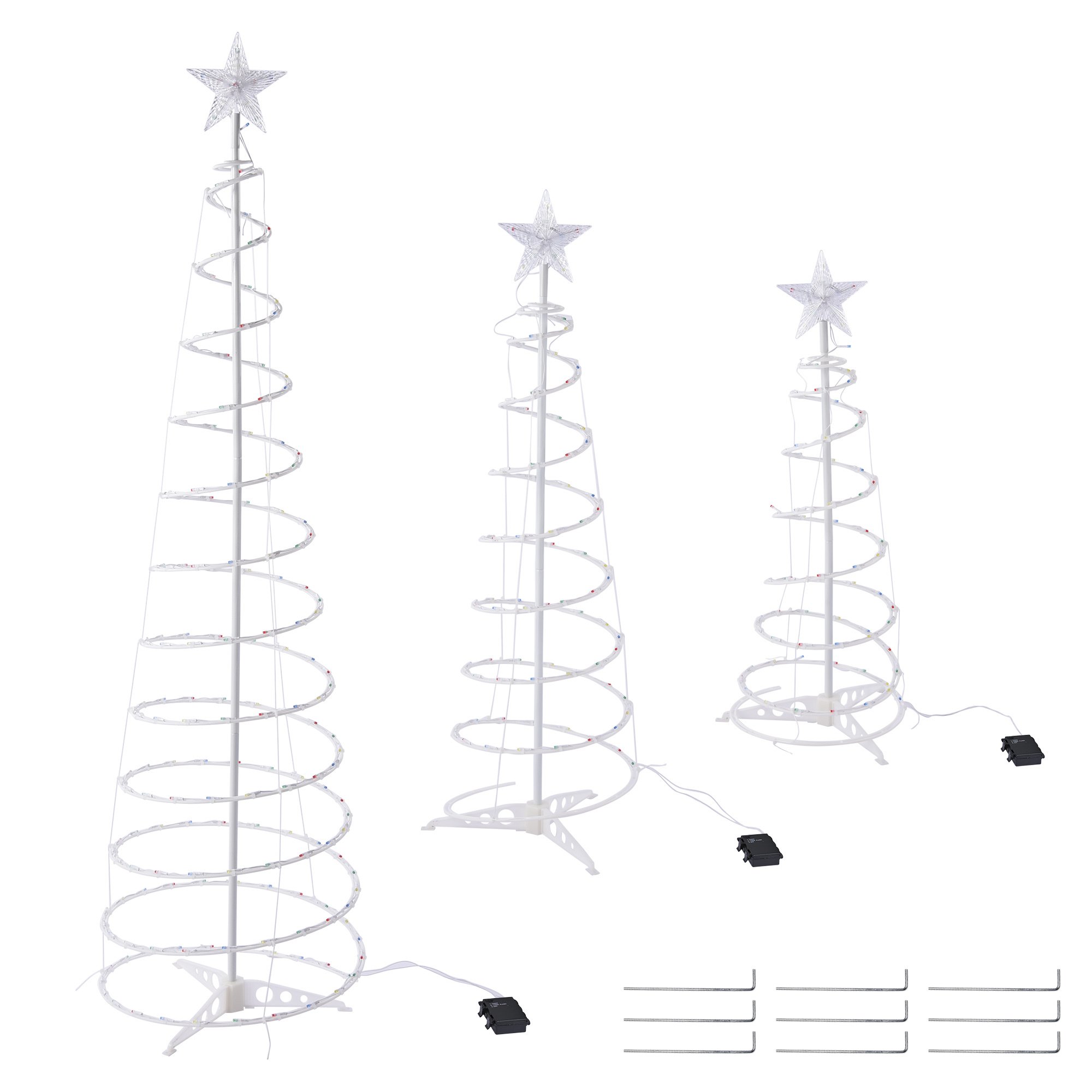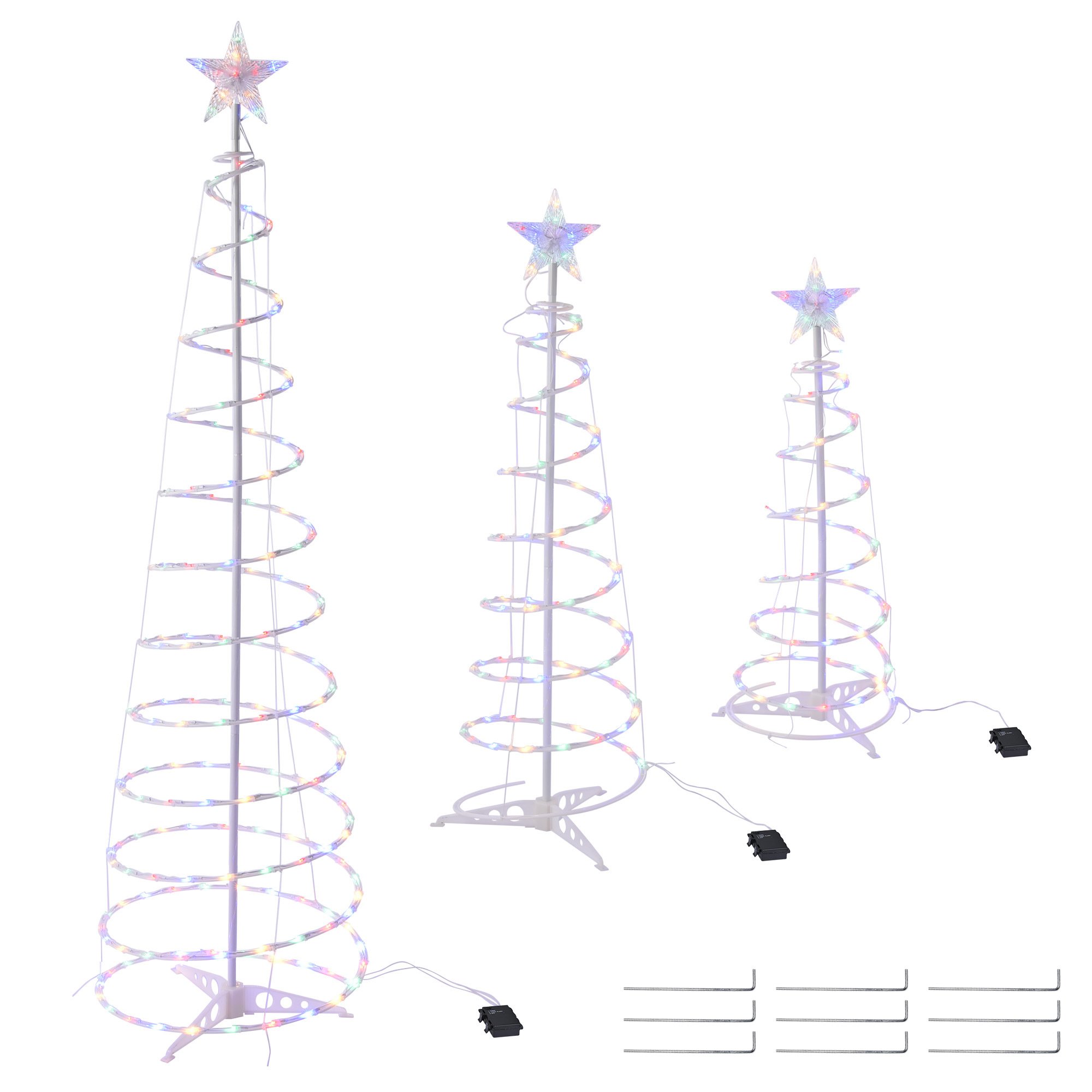 - Christmas Decoration - LED Christmas Lights Set contains 3 pieces of spiral LED Christmas tree with star finial (6ft, 4ft & 3ft in height); Freely choose Twinkle or Steady-on mode to make different effects for various occasions, 348 pcs RGB LEDs in red, blue, green & yellow colors, shining to make your night full of fun