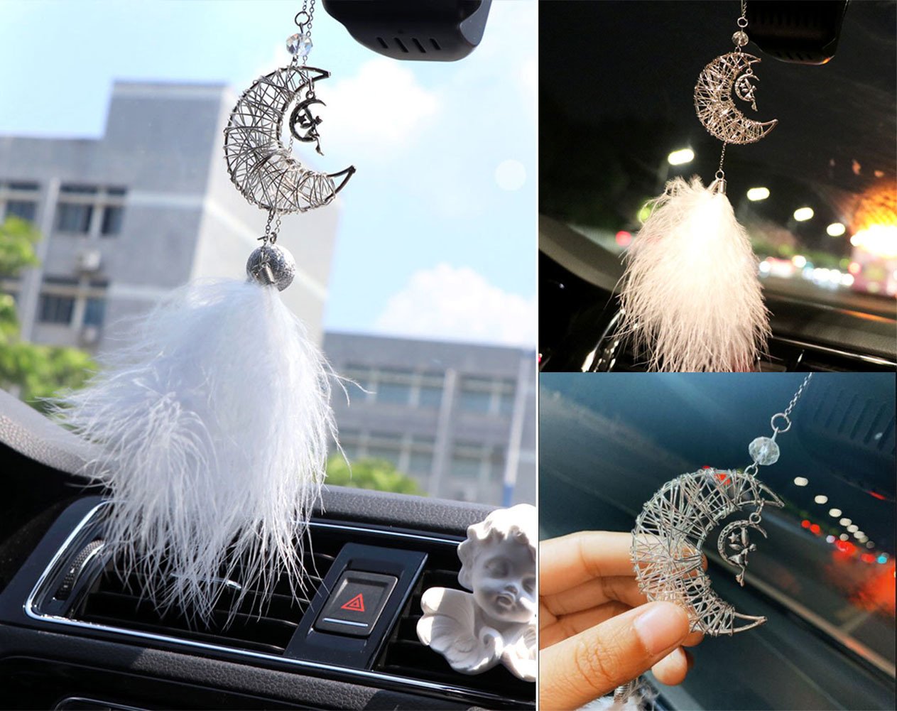 Moon Elf WIth Nature Feather Car Interior Rearview Mirror Hanging Decor for Best Wishes