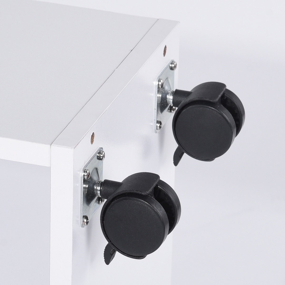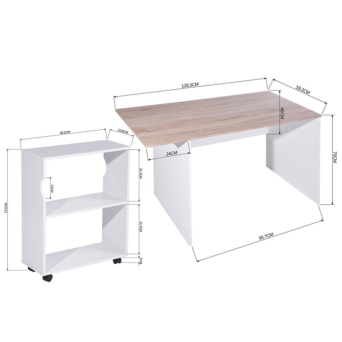 2.Simple Designed work place with movable bookshelf on the left, it can be placed under the table top panel to save space, or it can be moved to anywhere for you. With the 4 PU castors with lock function, it can be moved easily on every floor, carpets...etc.