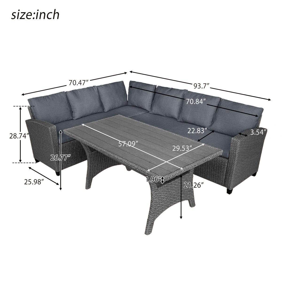 Patio Outdoor Furniture PE Rattan Wicker Conversation Set All-Weather Sectional Sofa Set with Table & Soft Cushions