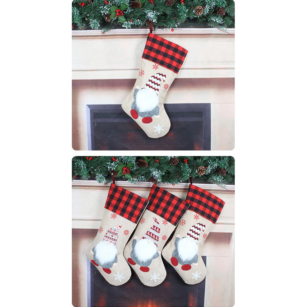 Christmas Stockings 19" Xmas Plaid Gnome Santa Stocking for Home Party Decoration