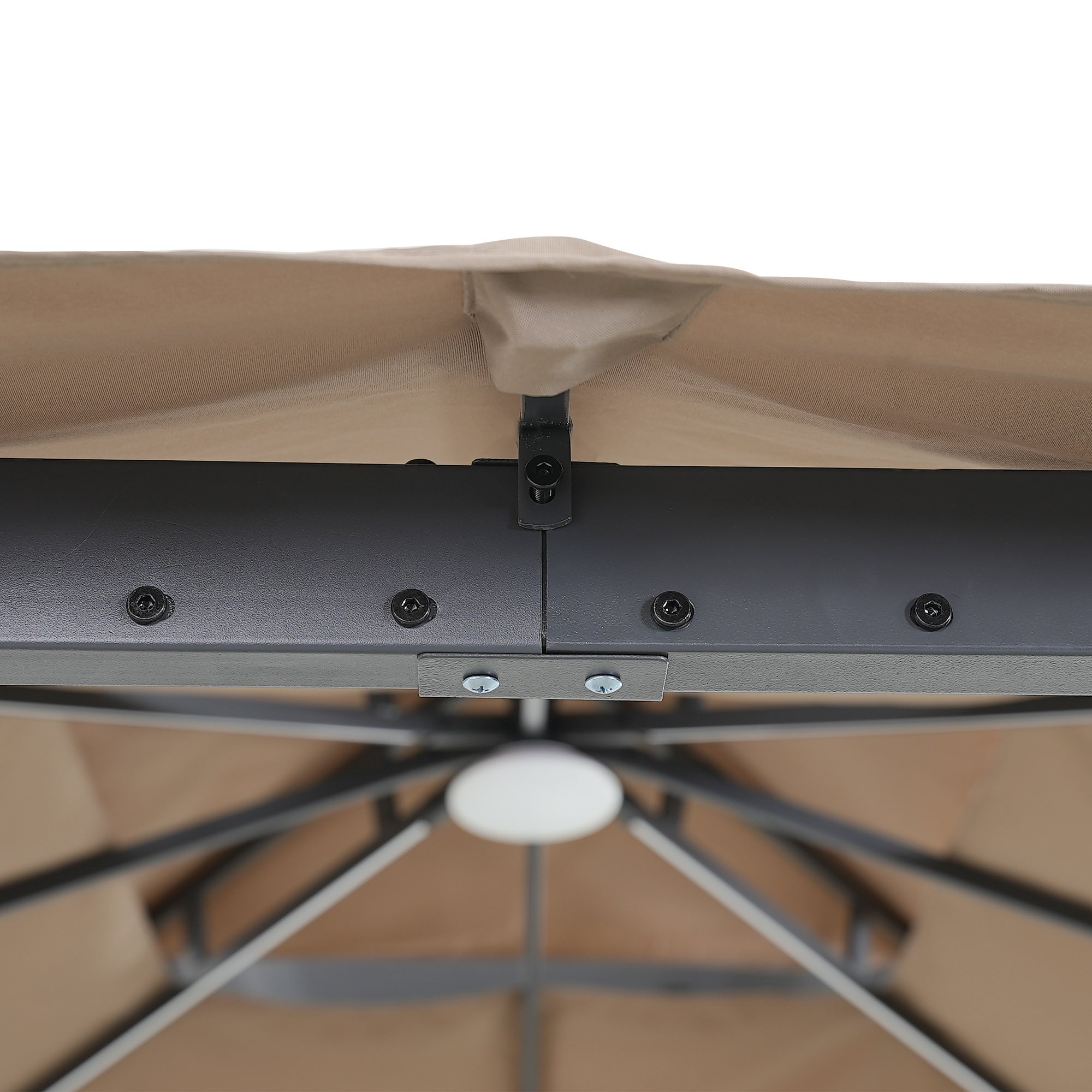4.LED Roof Light Come with 4 built-in light guides in roof frame and Solar-powered light in top, this patio gazebo perfects for using not only in daytime but also night. All of the lights can be controlled by a button and 3 levels are available for roof light. Soft light creates a romantic atmosphere when night falls.Warm Notice: Lithium battery is not included. Please buy a cylindrical lithium battery 18650 in local area.