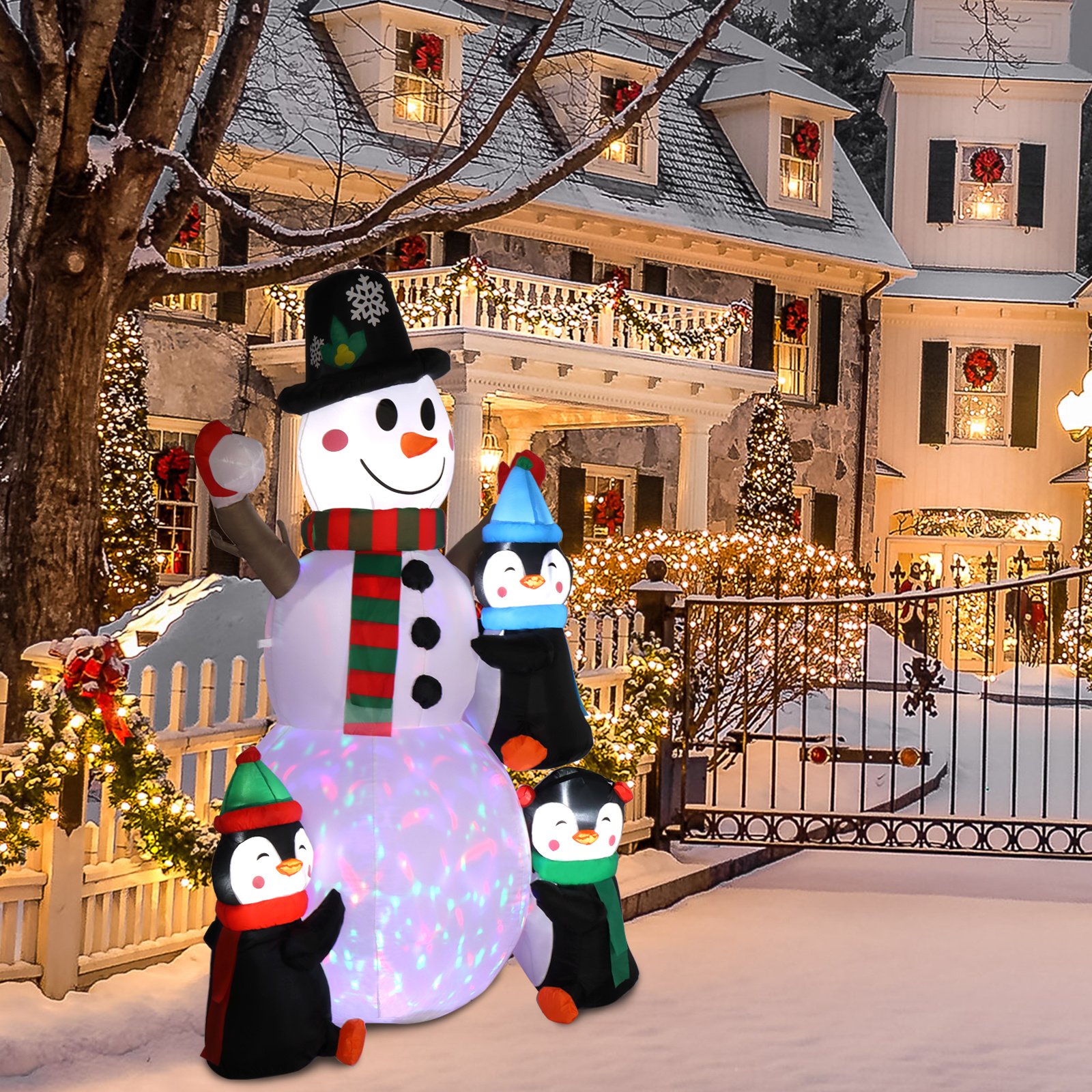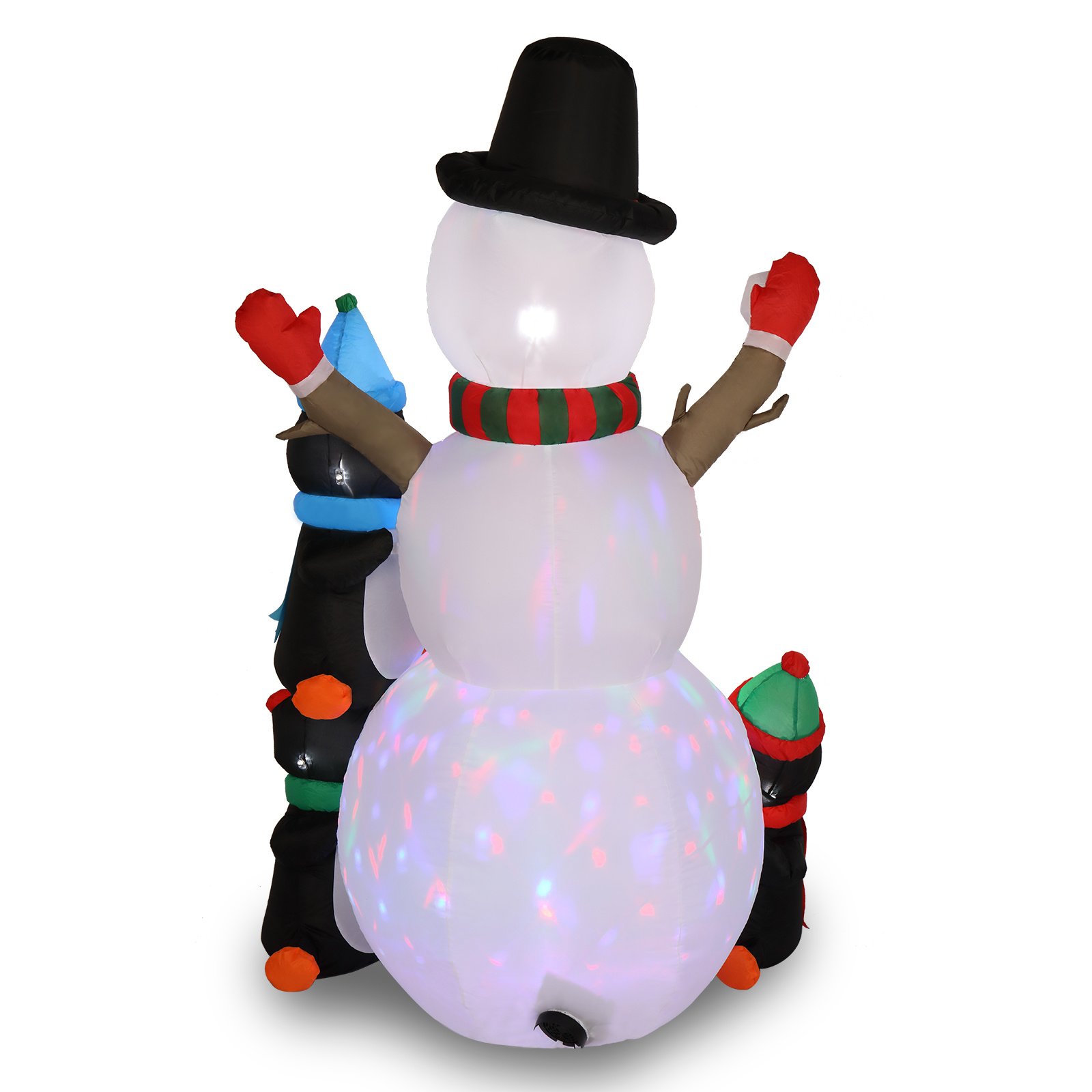 6ft With 3 Penguins, 4 Light Strings, 1 Colorful Rotating Light, Inflatable, Garden Snowman Decoration